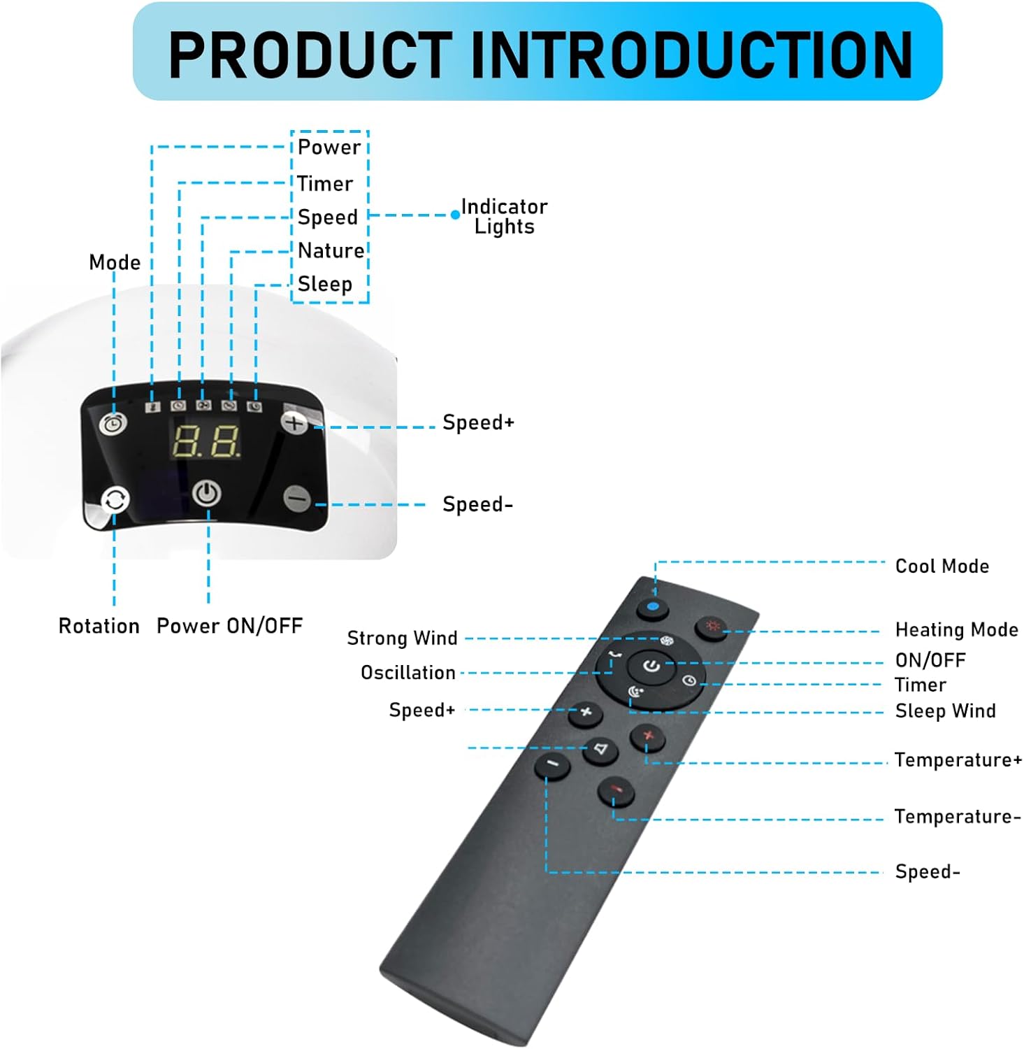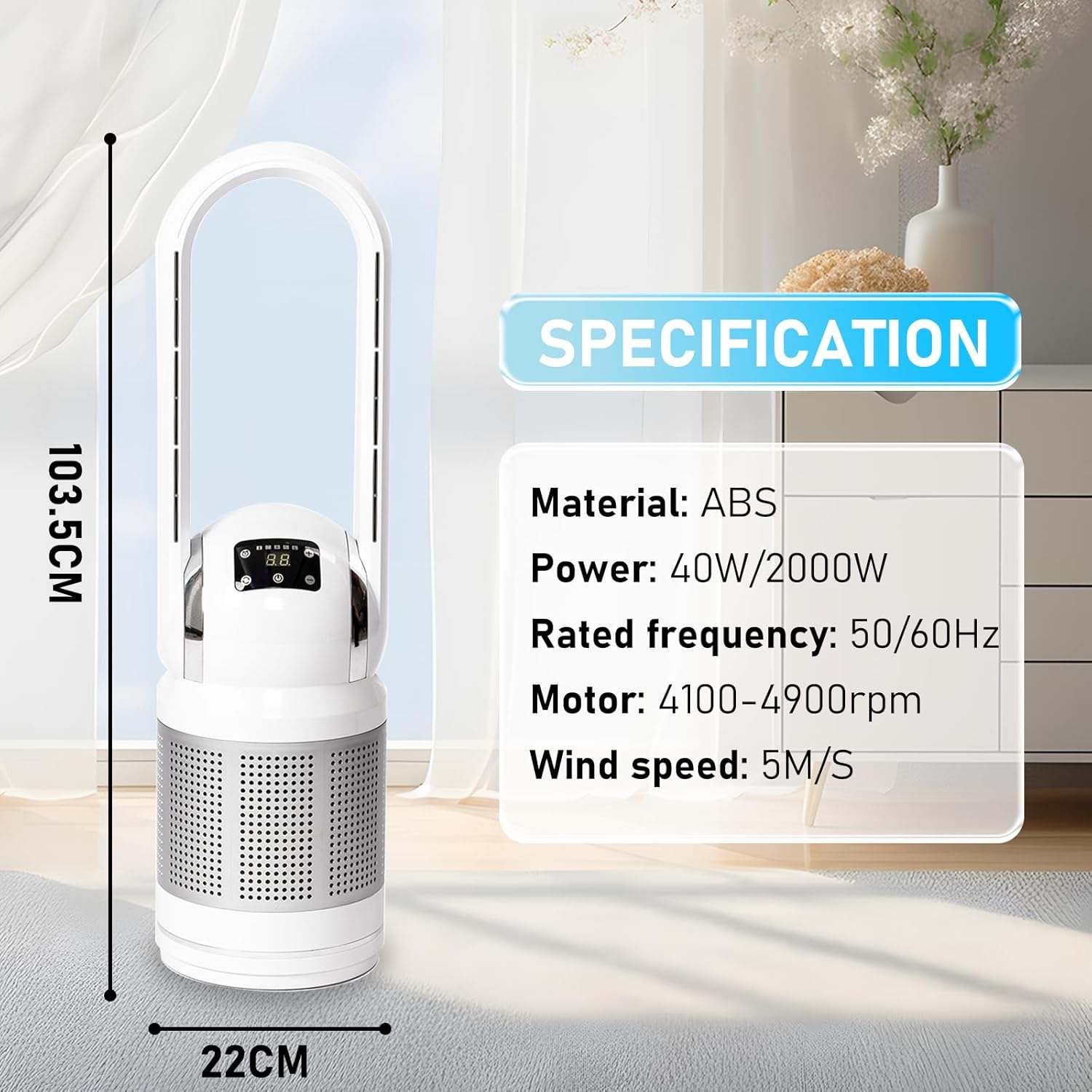 【Bladeless Heater-Cooler Fan】: Embracing a bladeless design concept, this fan ensures safety for families with children or pets. The absence of rotating blades enhances reliability and facilitates easy cleaning, saving you valuable time. Beyond its cooling capabilities, this fan also features a heating function, making it a versatile solution for both winter and summer needs. Enjoy year-round comfort, regardless of the season.
