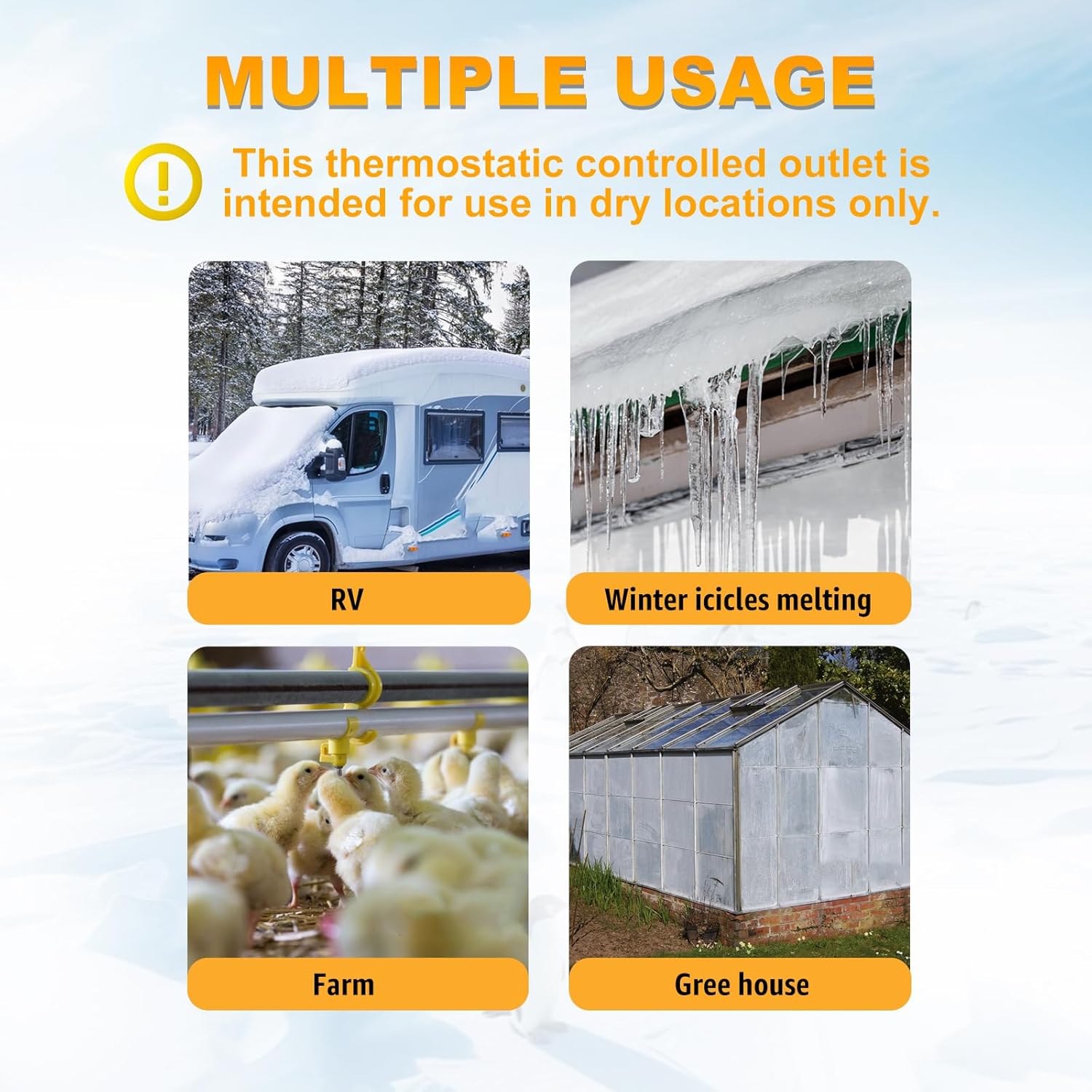 Can be use for other applications: 120 VAC electric heaters, gas heater, Engine heaters, pipe heat tape, roof heating cable and so on.