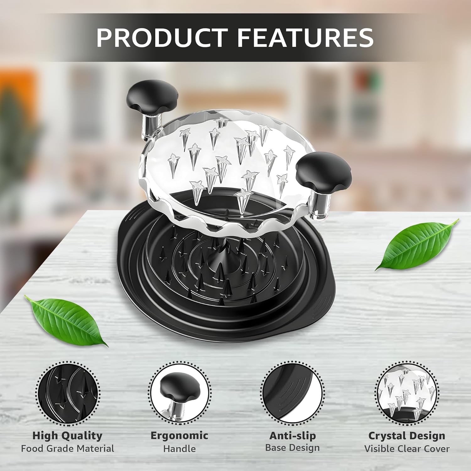 • 🔥 Silicone Mat – Protects your countertop from heat and mess, and ensures non-slip stability while using the shredder.
