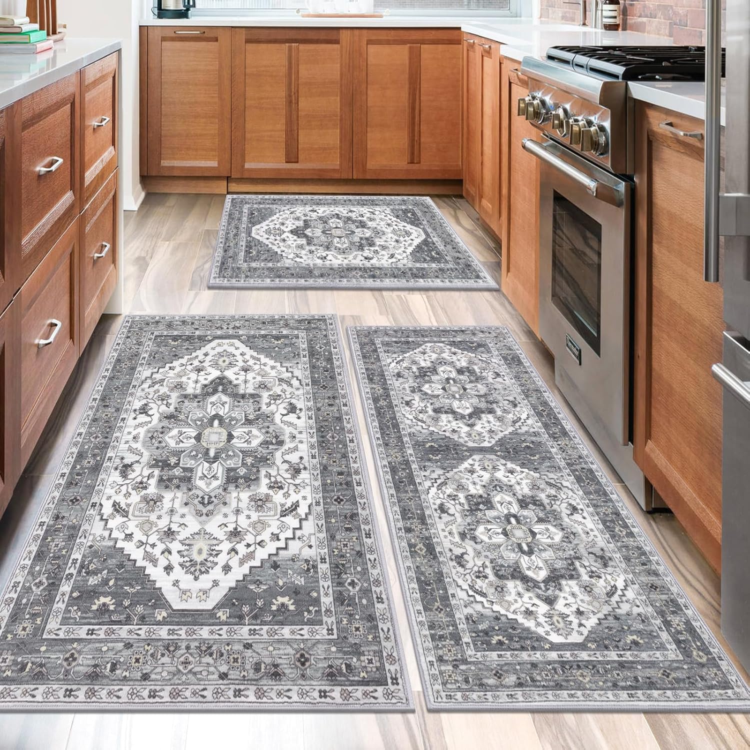 Washable Kitchen Rug Runner Set: Our washable rug can be routinely cleaned with a regular vacuum cleaner or machine washable for a deep clean.The farmhouse area rugs for kitchen has been tested for many machine washes, will not fade, will not deform