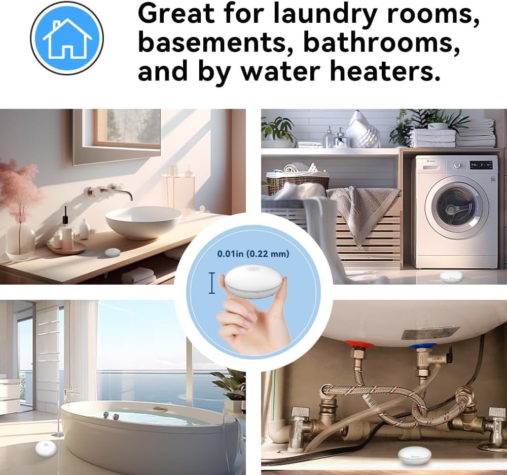 Versatile Water Sensor: The HEIMAN WiFi Water Leak Detector is a multi-functional device designed to protect your home from water damage. Whether it’s in the bathroom, kitchen, basement, or any other area prone to leaks, this sensor will alert you to potential water-related issues.