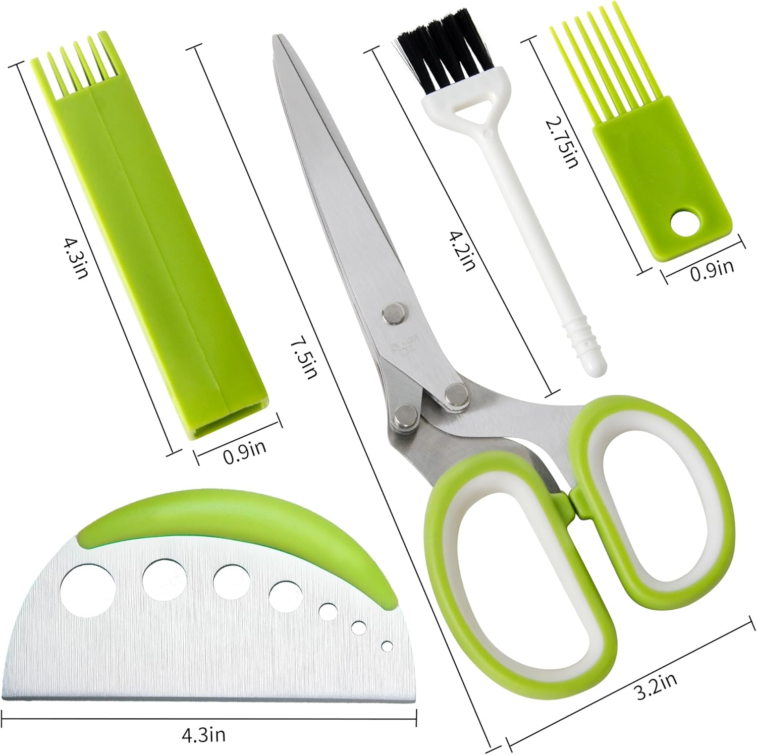 Five blade herb scissors: Food -grade stainless steel material and rubber handle. 5 blade herb scissors , the blade is sharp and quickly chopped and equipped with a clean comb and protective cover and Herb Stripping Tool. It can achieve fast chopped -cut kitchen coriander, green onions, vegetables, herbs and other foods that greatly improve your kitchen work efficiency.