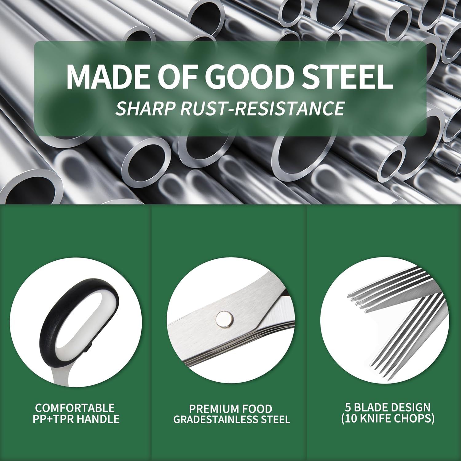 Widely used: You can use 5 blade herb scissors to chop, onions, onions, coriander, green onions, dried peppers, sage, etc. can save your cutting time , you can quickly achieve food chopping, and protect your hand. Not harmed, it is very suitable for novice kitchen.