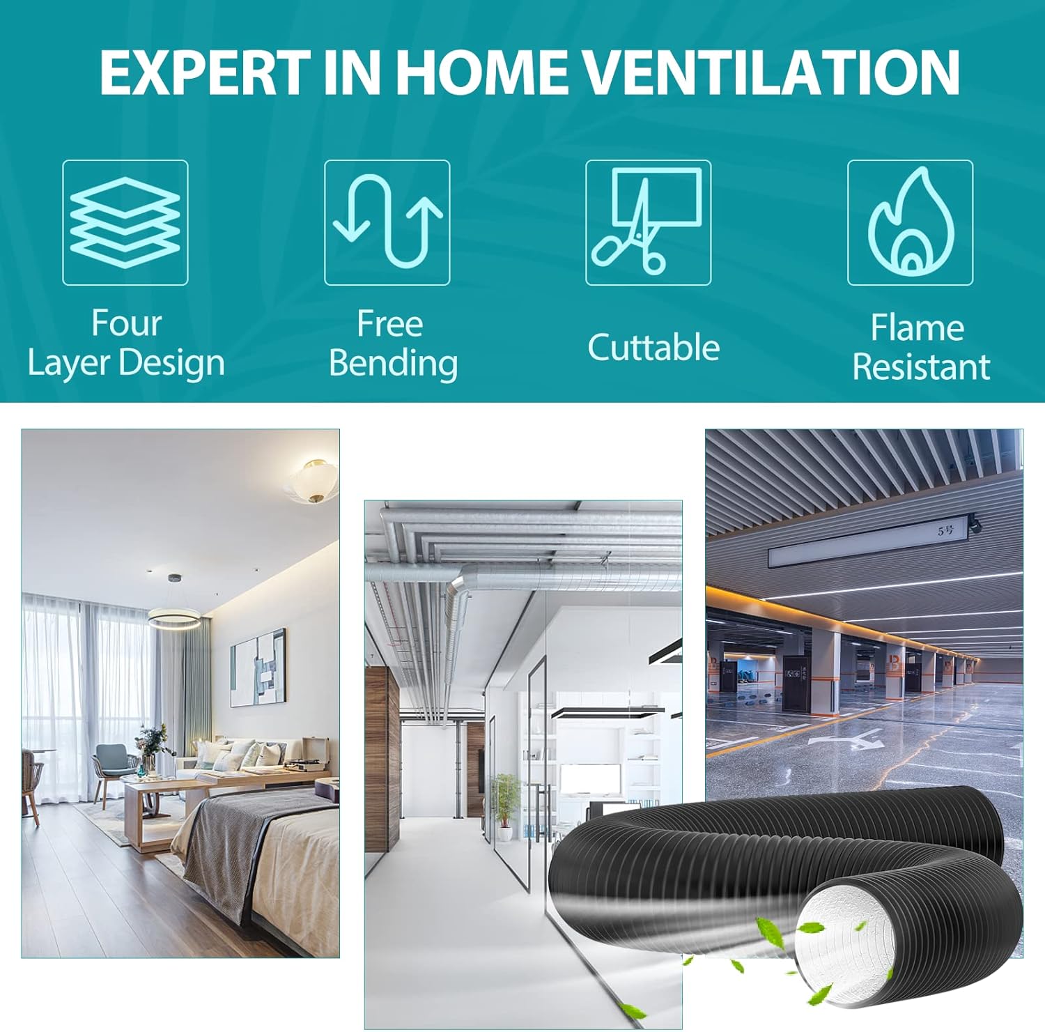 Heavy Duty Duct Hose: The 6” flexible ducting features 3-layer protection, is made of aluminum foil + PET that protects the ducting from cuts and tears, and the outer layer of black PVC all while resistant to leaks.