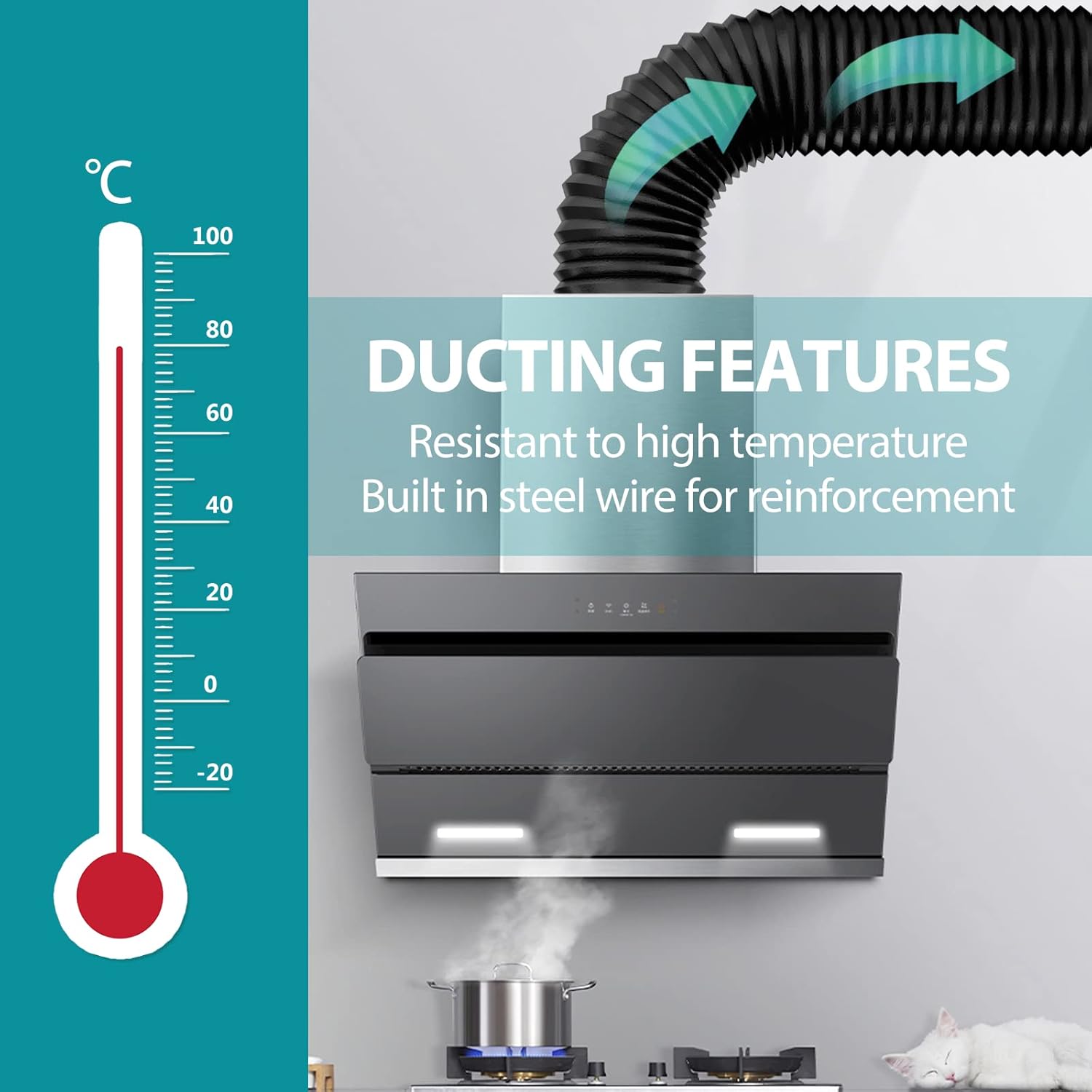 Heavy Duty Duct Hose: The 6” flexible ducting features 3-layer protection, is made of aluminum foil + PET that protects the ducting from cuts and tears, and the outer layer of black PVC all while resistant to leaks.