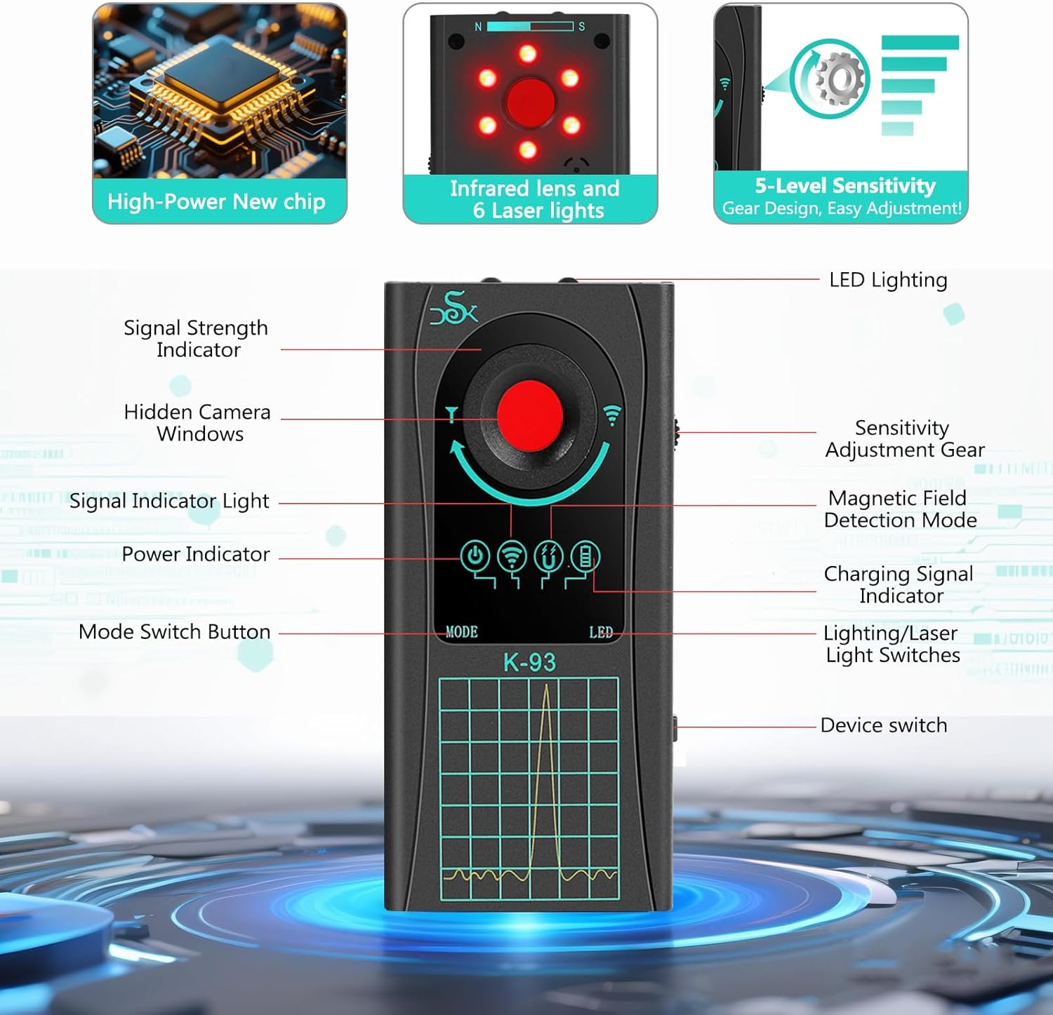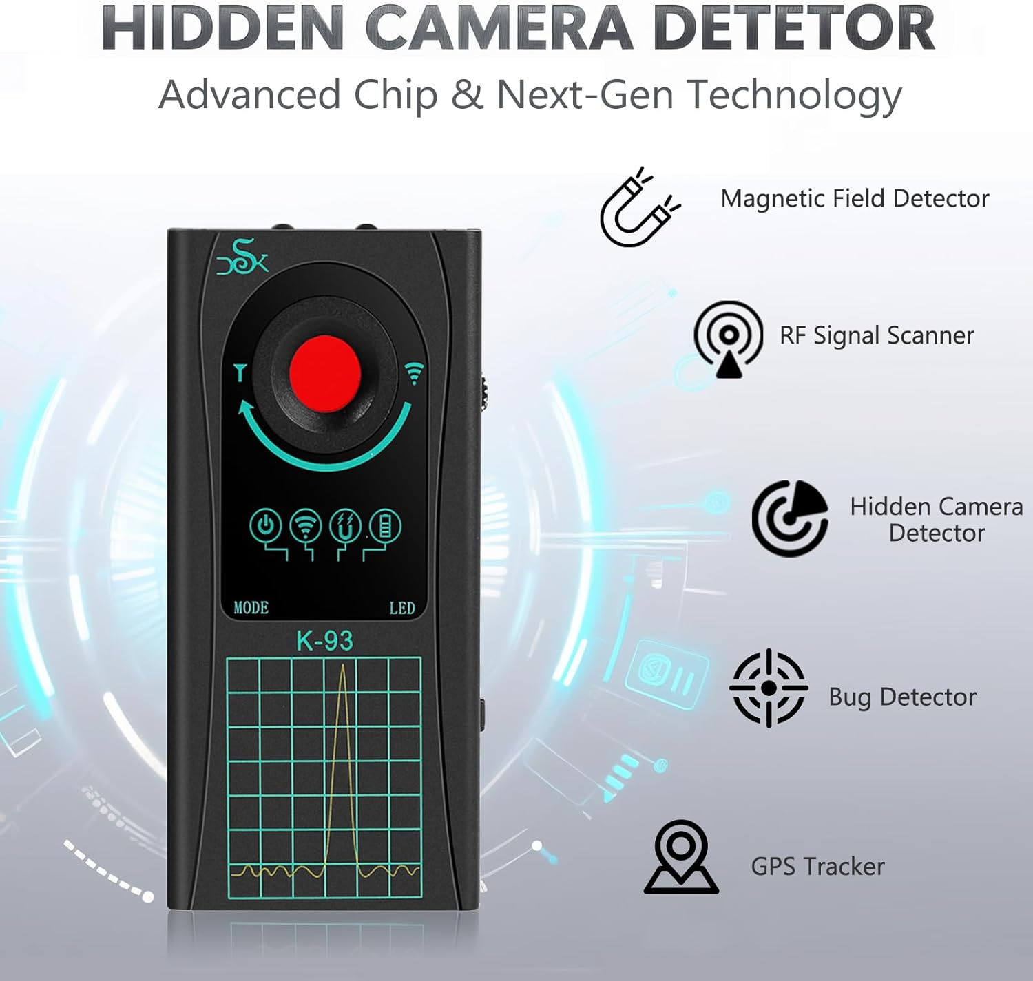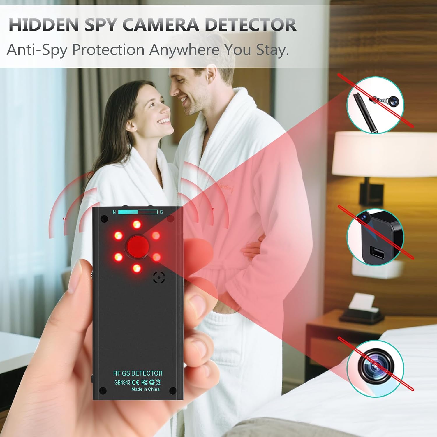 2025 Upgraded Detection: Upgraded AI algorithm cross-analyzes RF signals (1.2G-5.8GHz), magnetic fluctuations & lens reflections with 99.7% accuracy—exposing hidden cameras, GPS trackers, and bugs in hotels, offices, and homes. Outsmarts newest spy tech with real-time threat mapping.