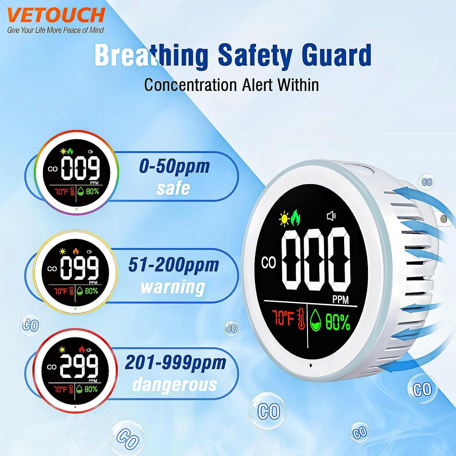 ✔️【All-in-One Safety Solution】Experience our advanced CO Detector with Temperature Humidity that combines three essential monitoring functions in one sophisticated device. The clear CO Detector with Digital Display ensures easy reading from any angle, making it an ideal New Home Safety Device.