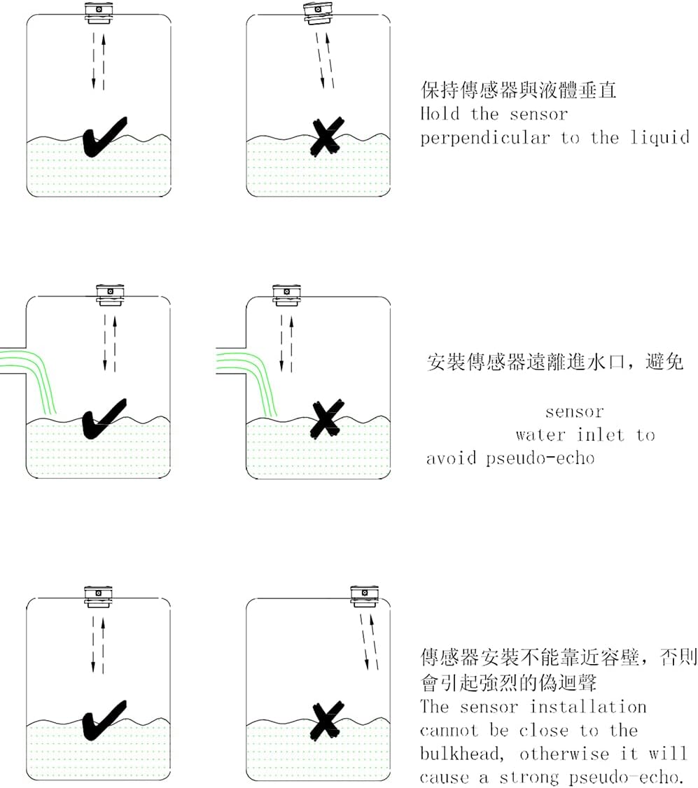 The ultrasonic liquid level sensor need installed on the top center of the water tank