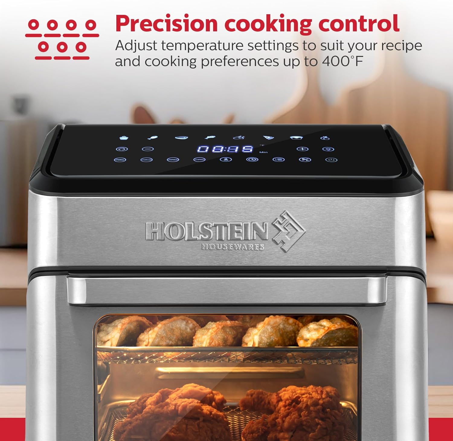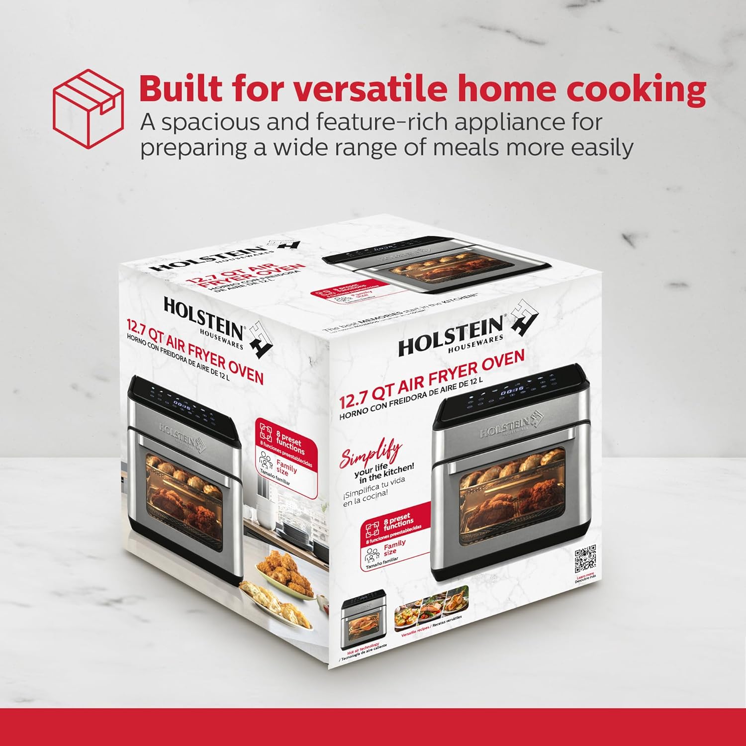 Introducing our 12.7 QT Air Fryer Oven, designed to simplify your cooking experience with its 12 QT capacity, adjustable temperature control and 8 pre-set programs. Its sleek design adds a modern touch to your kitchen, while its hot air technology allows you to prepare healthier and more delicious meals. Upgrade your cooking game effortlessly.