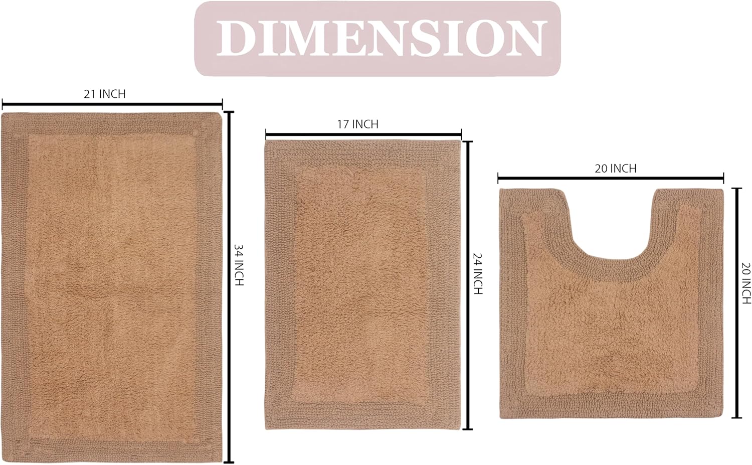 Perfect Product Set – Our bathroom rug sets include 1 small bath rug 17″x24″, 1 medium bath rug 21″x34″ and 1 U-shaped toilet rug 20″x20″. These three different sizes perfectly fit in your bathroom and wash Basin area. And Solve all your problems at once.