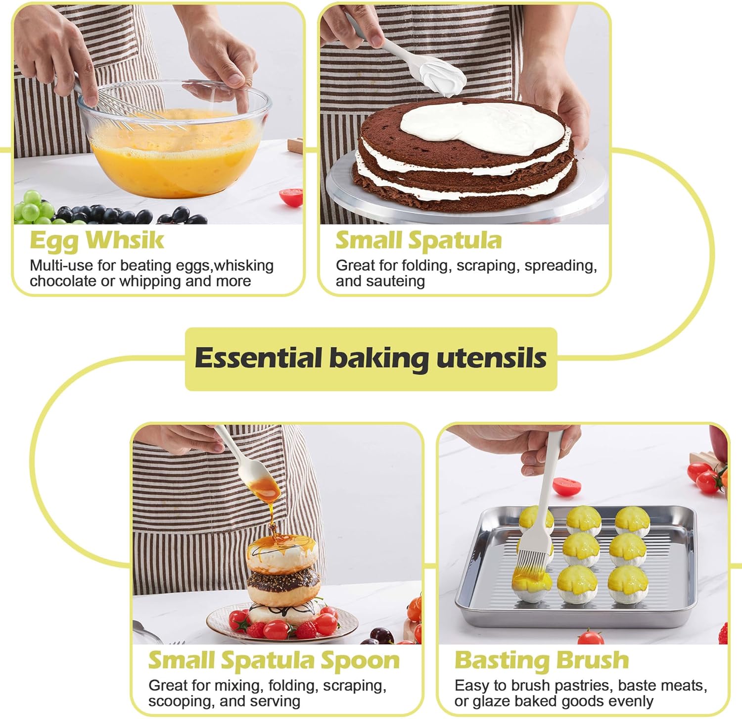 Our silicone kitchen cooking utensils set includes a large selection of pieces which can meet all your cooking and baking need. Food grade silicone stiff reinforcement inside without floppy, solid and sturdy structure will not warp, crack or deform.