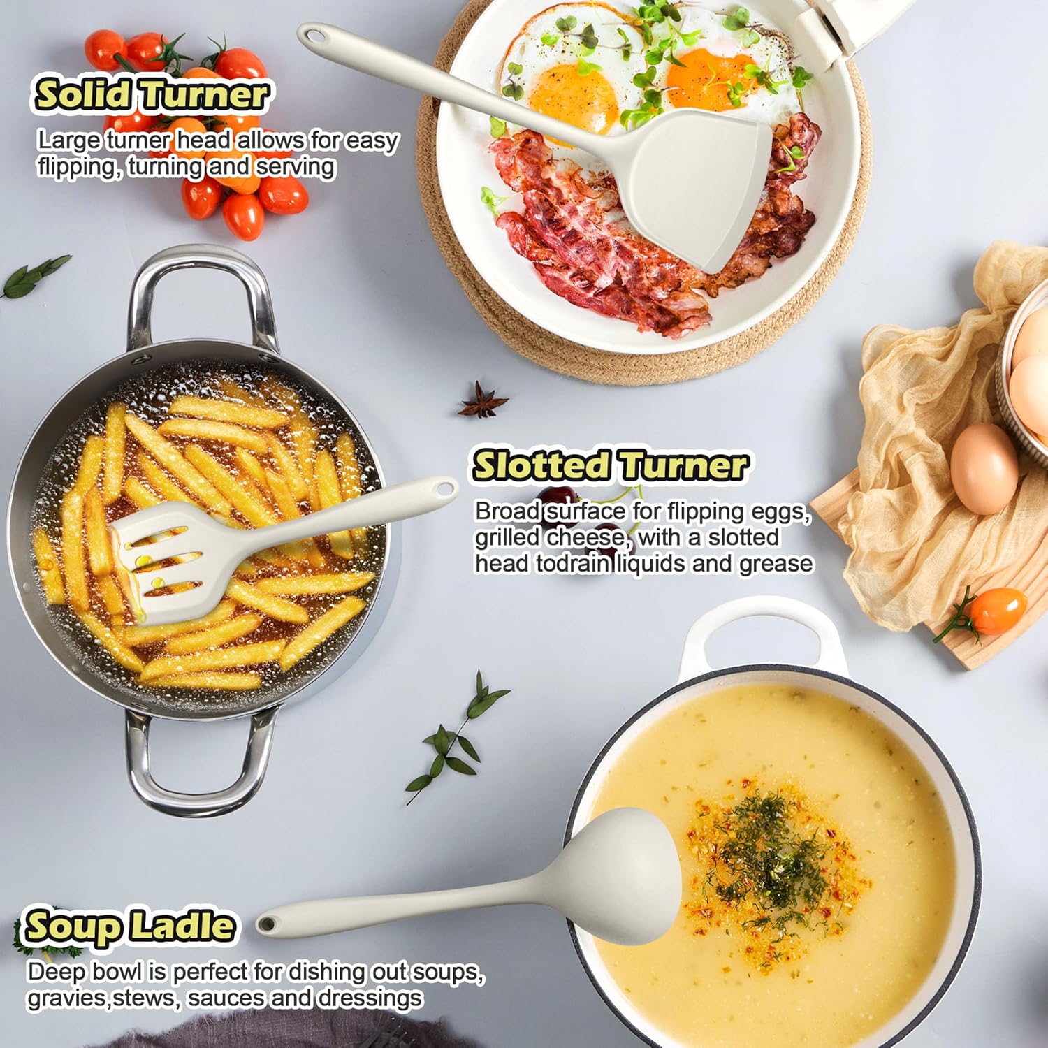Exquisite crafted, non-toxic cooking utensils are well-made with one piece molding without nooks or crannies to capture bacteria, ergonomically designed with great size weight and proper thickness, , anti-scalding silicone handle prevent your hand get scalding, provide comfortable grip to elevate your cooking experience