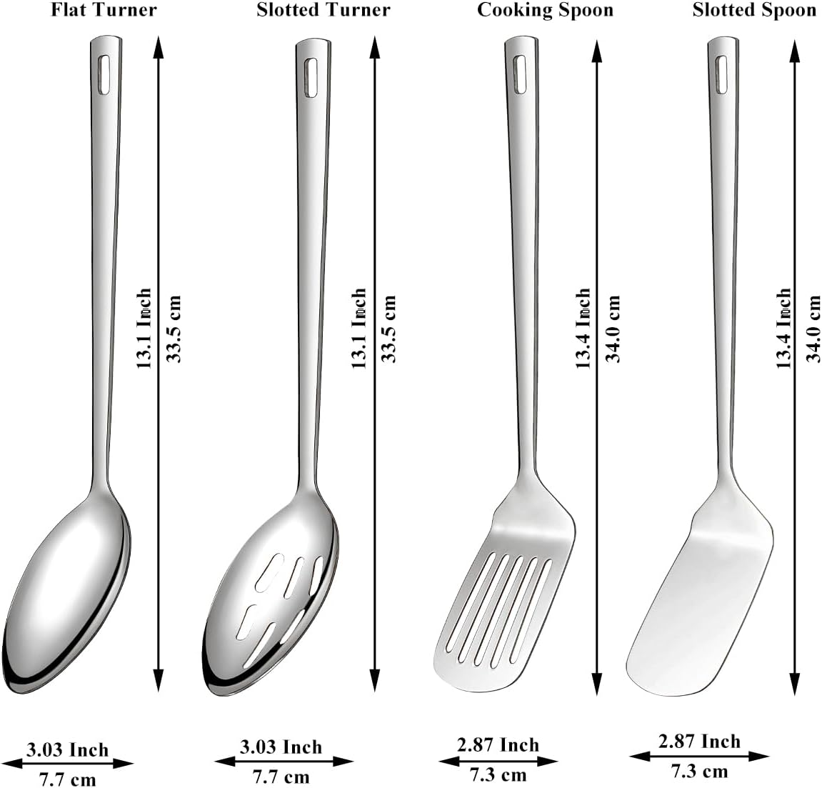 Covering all your basic cooking needs. Whether you’re stirring sauces, flipping pancakes, or serving dishes, this set has you covered.Featuring smooth, polished surfaces, each utensil resists food residue buildup, making cleanup a breeze.