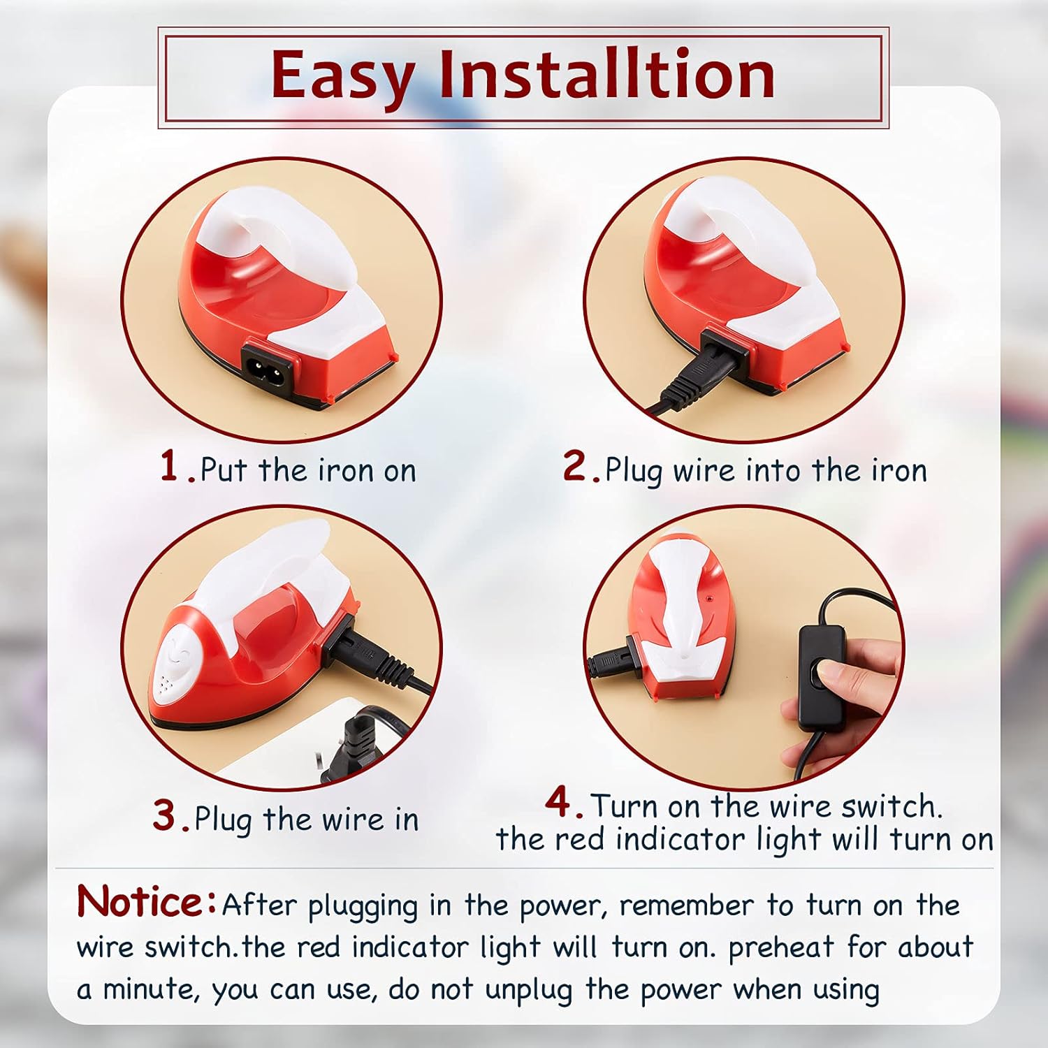 Various applications: small iron machine is suitable for a variety of fabric materials including wool, polyester, plush, silk, fiber, nylon, velvet and linen; It fits for craft enthusiasts and housewives, you can also take it as a useful gift to friends; Notice: After plugging in the power, remember to turn on the switch, and the red indicator light will turn on, then preheat for about a minute to use, do not unplug the power when using