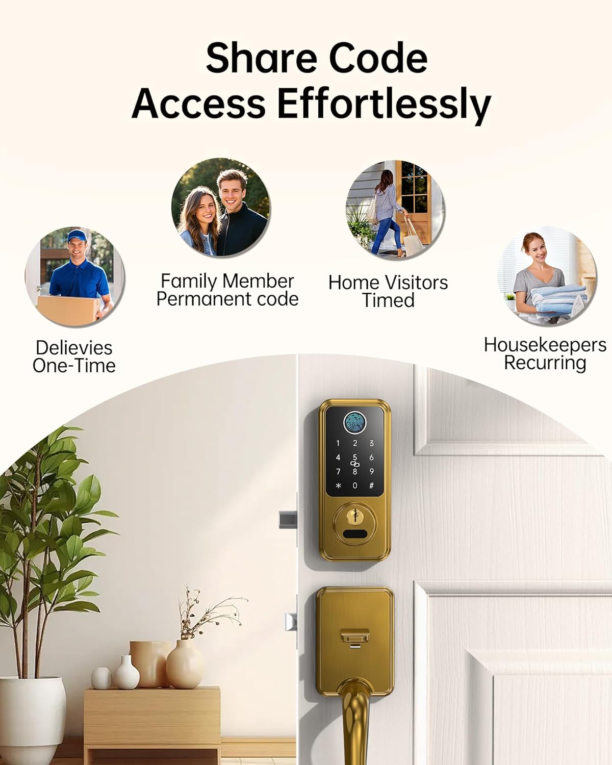 Grant Flexible Temporary Access: Offer temporary access codes for dog walkers, guests, housekeepers, or staff. Assign up to 300 passcodes and revoke them anytime. No more worrying about extra keys floating around, you’re in control.