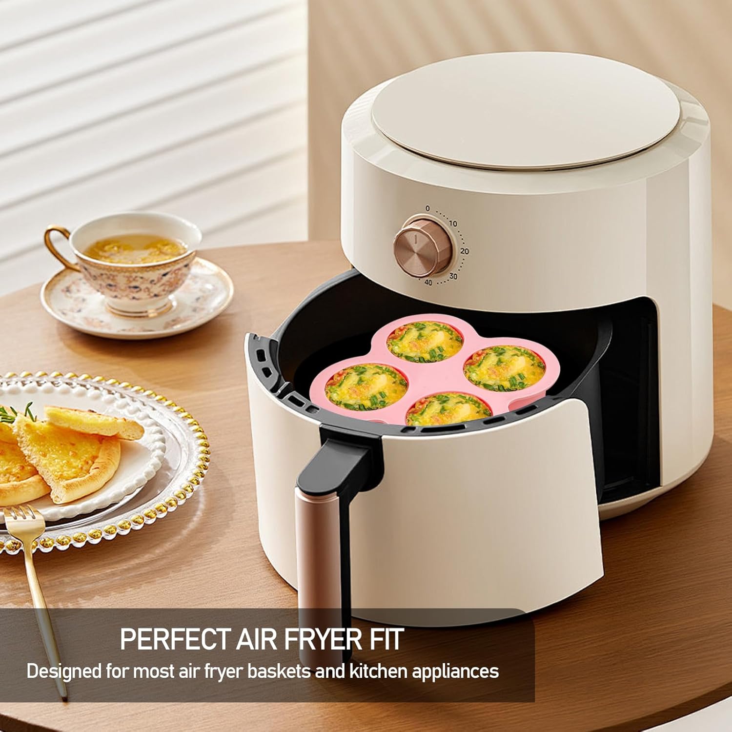 【Perfect Air Fryer Fit】 Compact 5.3″x5.3″ base with 4 cups (2.1″ diameter each) designed for most air fryer baskets and kitchen appliances.