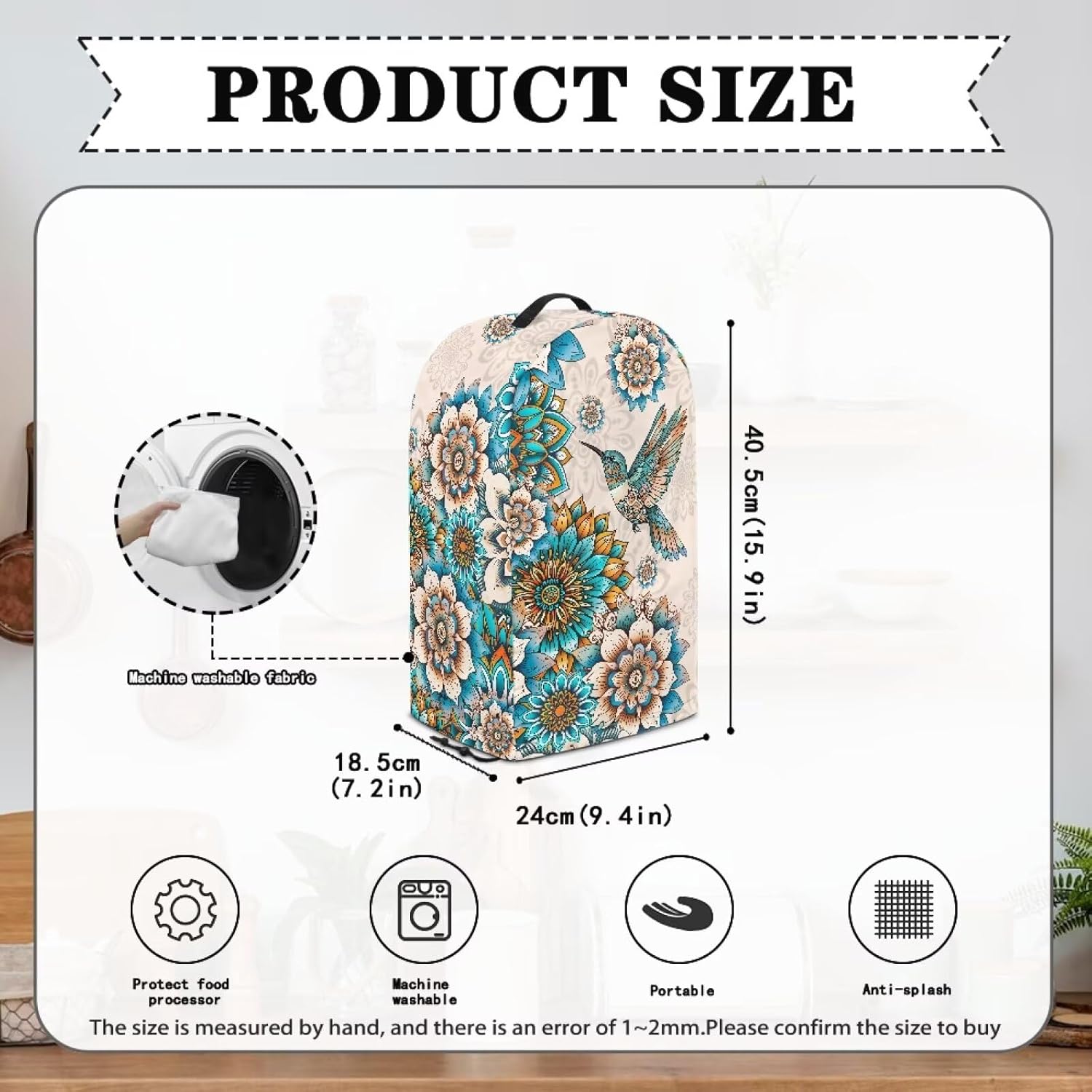【SIZE】Measuring 9.4*7.2*15.9 inches, this standard fit blender cover fits most standard blender appliances. Our Blender Dust Cover has an adjustable drawstring at the bottom, which can better fix your blender machine or coffee machine