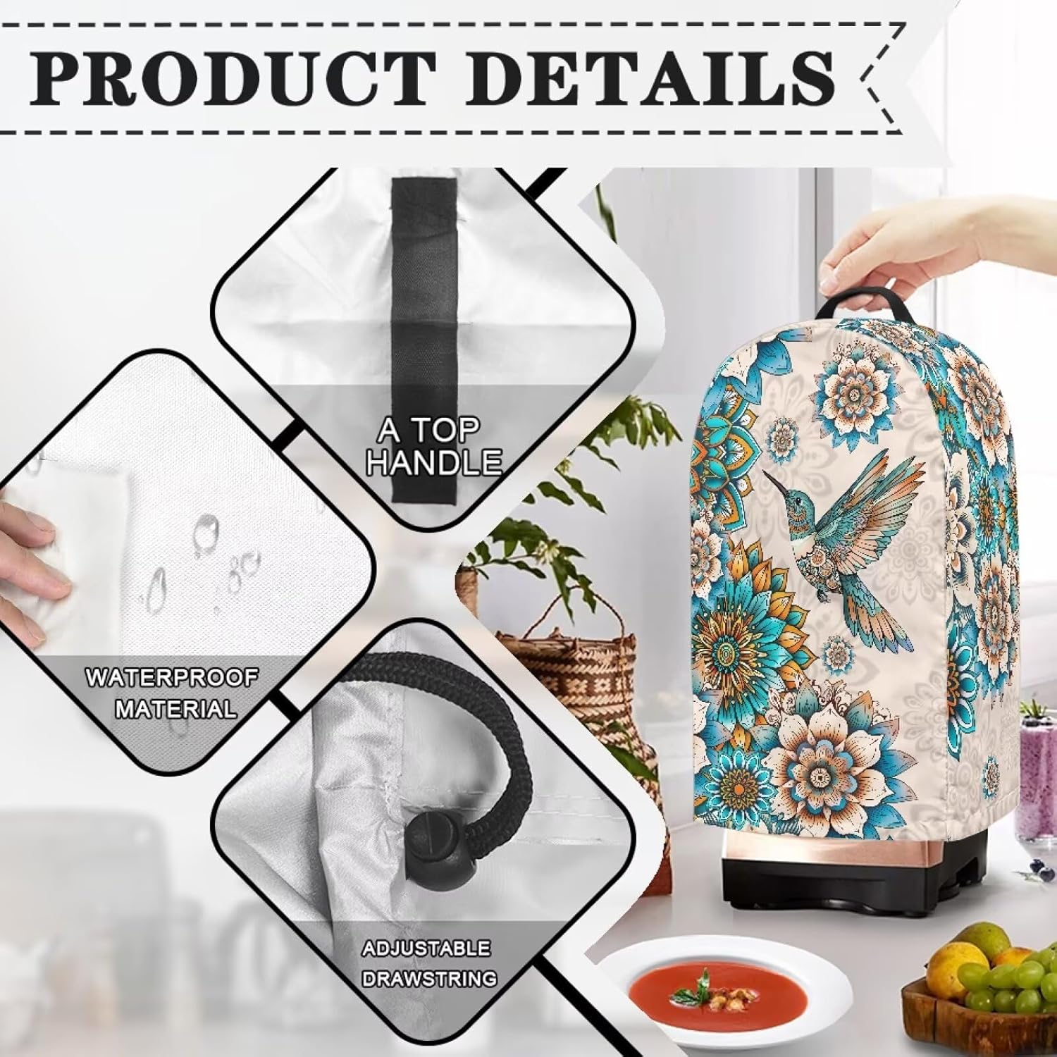【PREMIUM FABRIC】Constructed with water-resistant material, this small appliance cover will stand up nicely without blender in it, and can serve you well for years to come