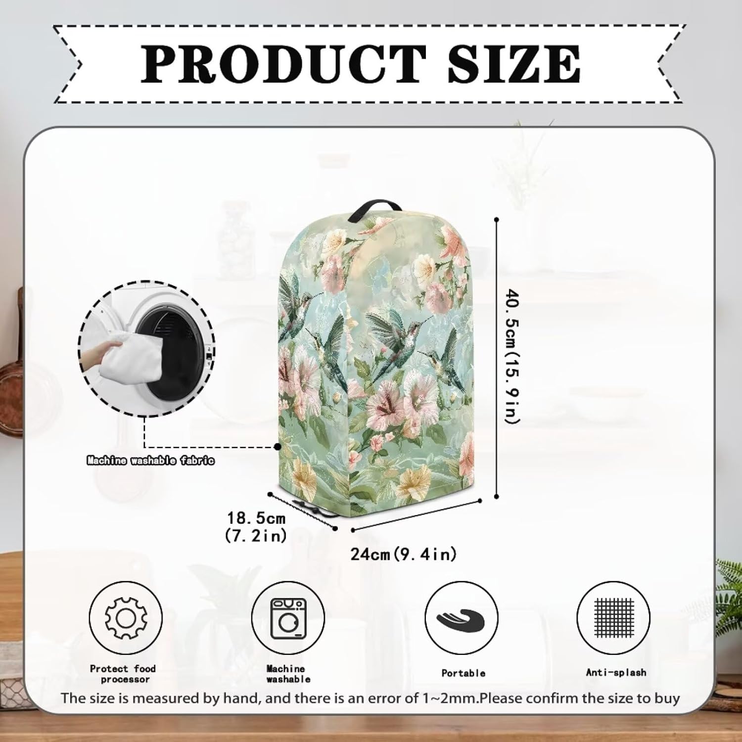【SIZE】Measuring 9.4*7.2*15.9 inches, this standard fit blender cover fits most standard blender appliances. Our Blender Dust Cover has an adjustable drawstring at the bottom, which can better fix your blender machine or coffee machine