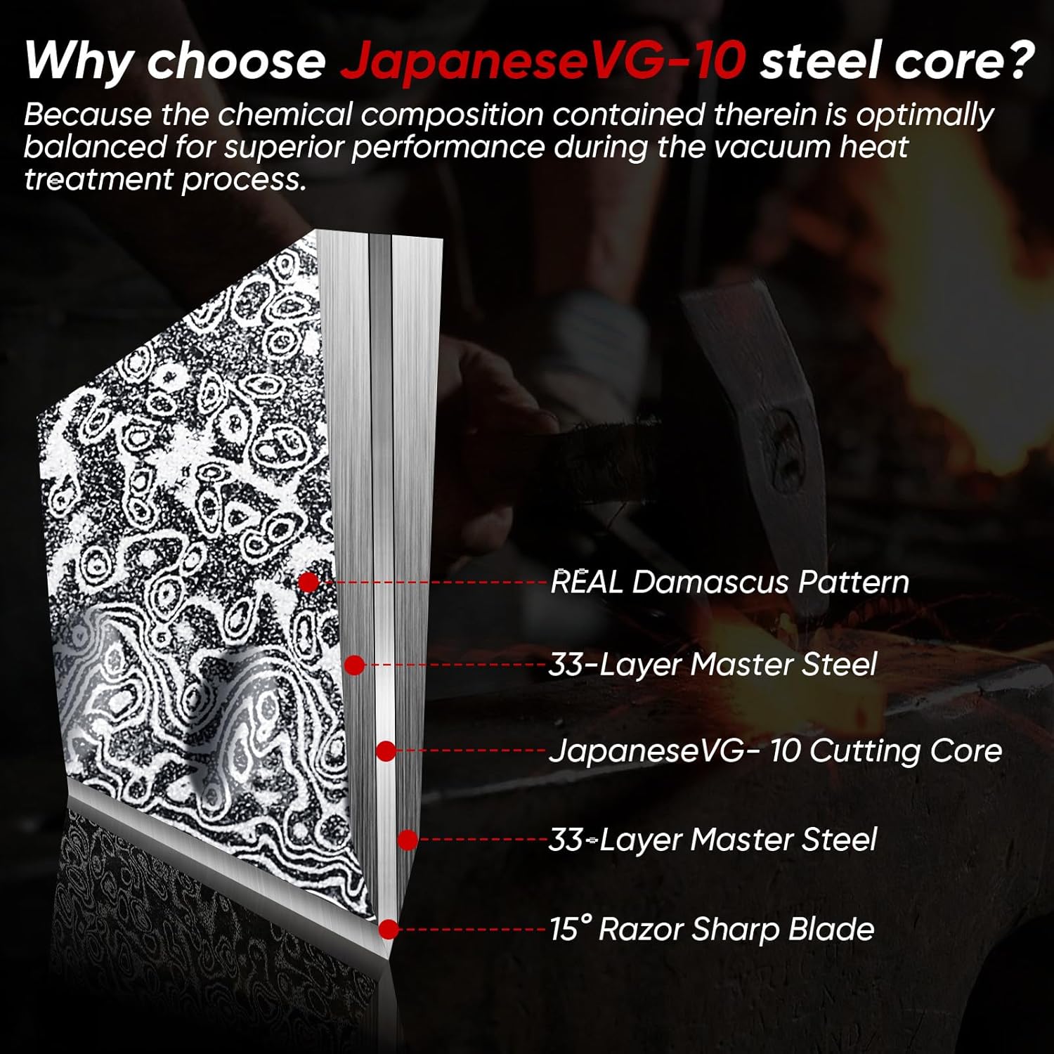 Extremely Sharp Edge: The high-quality VG-10 steel core with excellent corrosion resistance, abrasion resistance and high hardness. Both sides of the blade are adjusted to the optimal angle through wet edge grinding for a balance of sharpness and durability. The cutting lines are clear and smooth, preserving the shape, texture, and taste of ingredients without compromise.