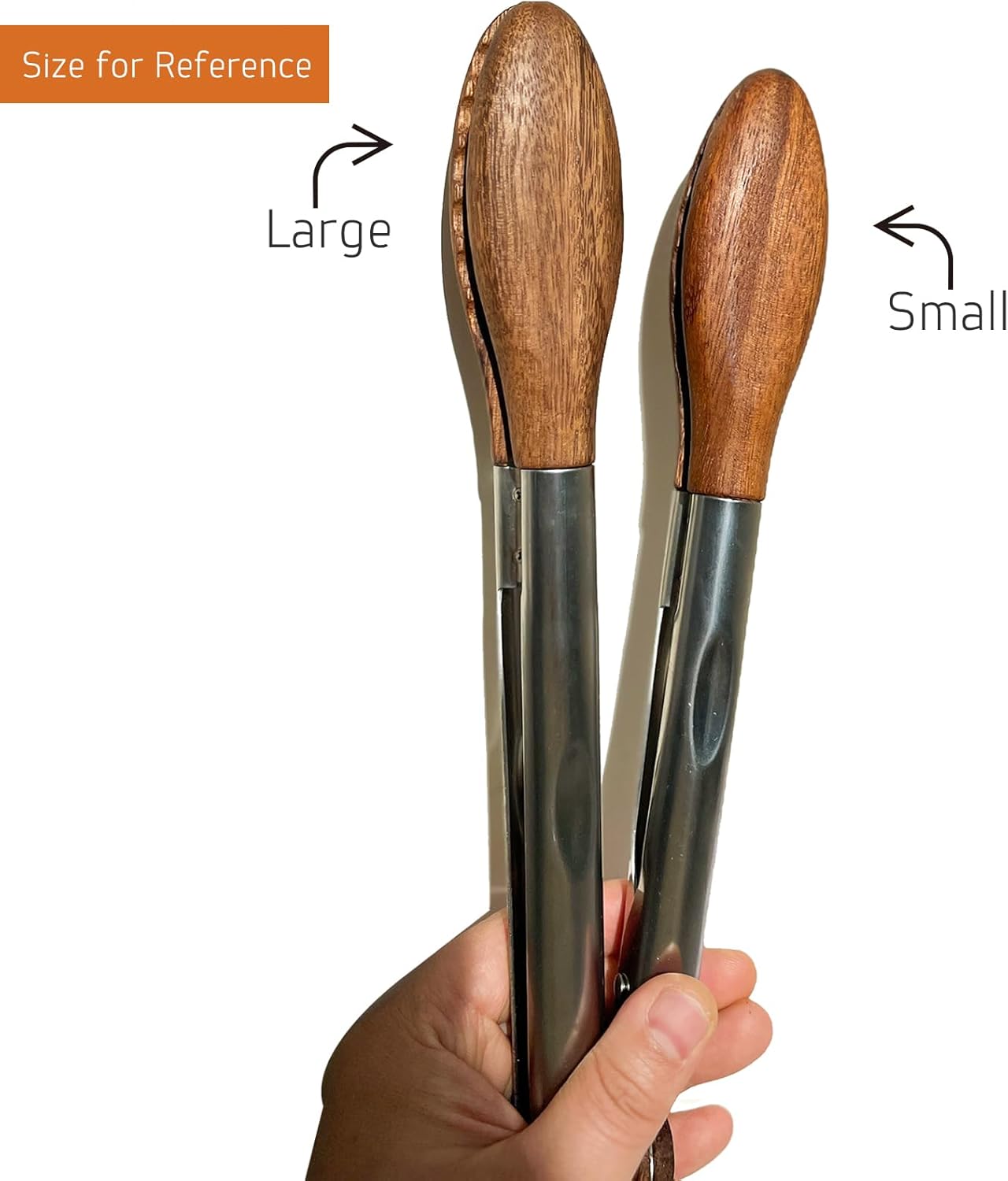 H&Zebrabro Food Tongs with Wood Tip, Salad Tong for Cooking, Serving, Grill, Kitchen Tongs Stainless Steel Handle, Kitchen Tools Set (Large)