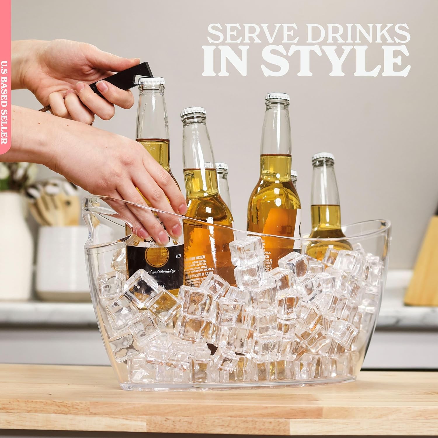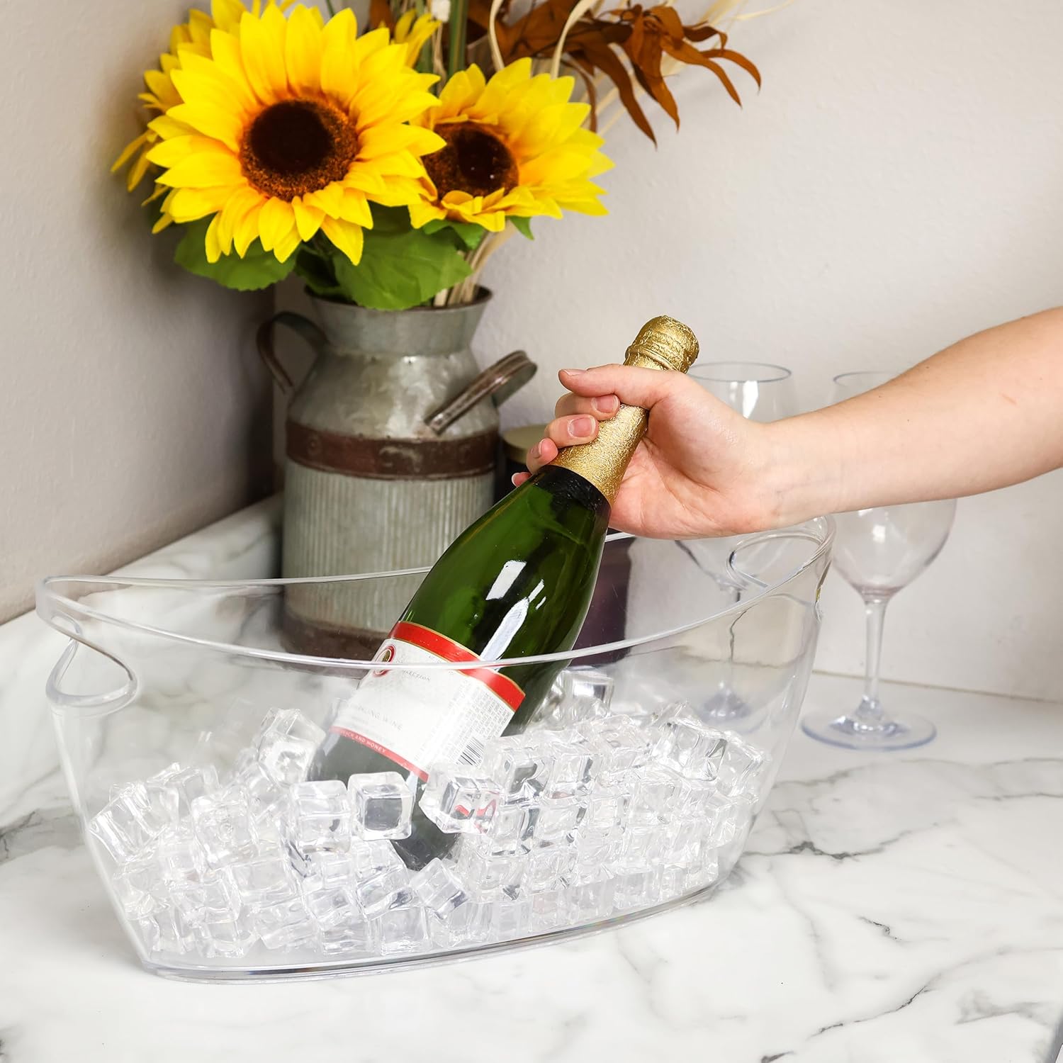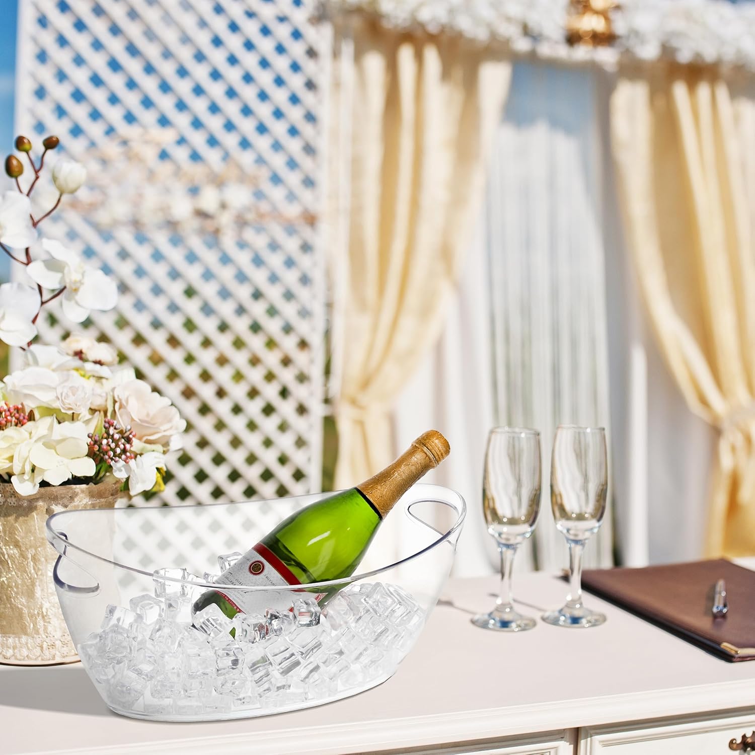 Ice Bucket for Champagne – 2 Pack Plastic Ice Buckets for Parties – 5.5L Oval Transparent Bridal Beverage Tub Cooler Catering Bar Accessories for Wine, Beer, Liquor, Spirits and Seltzers