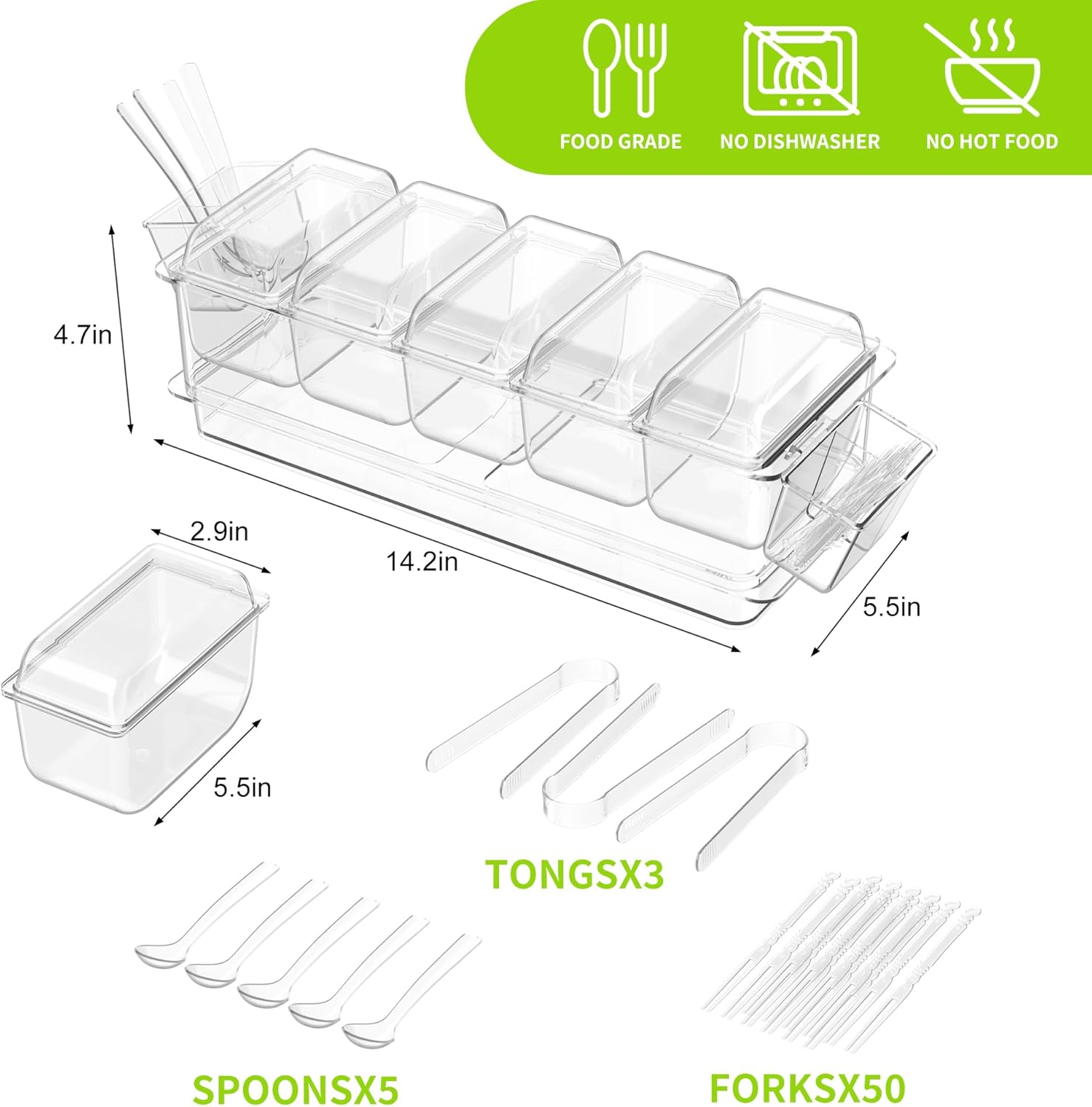 Suitable Size: Condiment tray size: 15.6″L x 5.8″W x 5.5″H; Each removable compartment size: 5.5″ x 2.9″