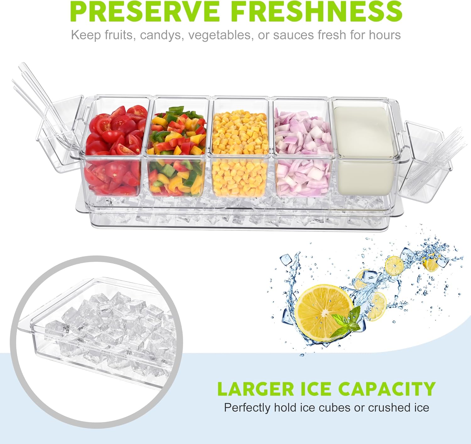 The video showcases the product in use.The video guides you through product setup.The video compares multiple products.The video shows the product being unpacked. Ice Chilled 5 Compartment Condiment Server Caddy Merchant Video