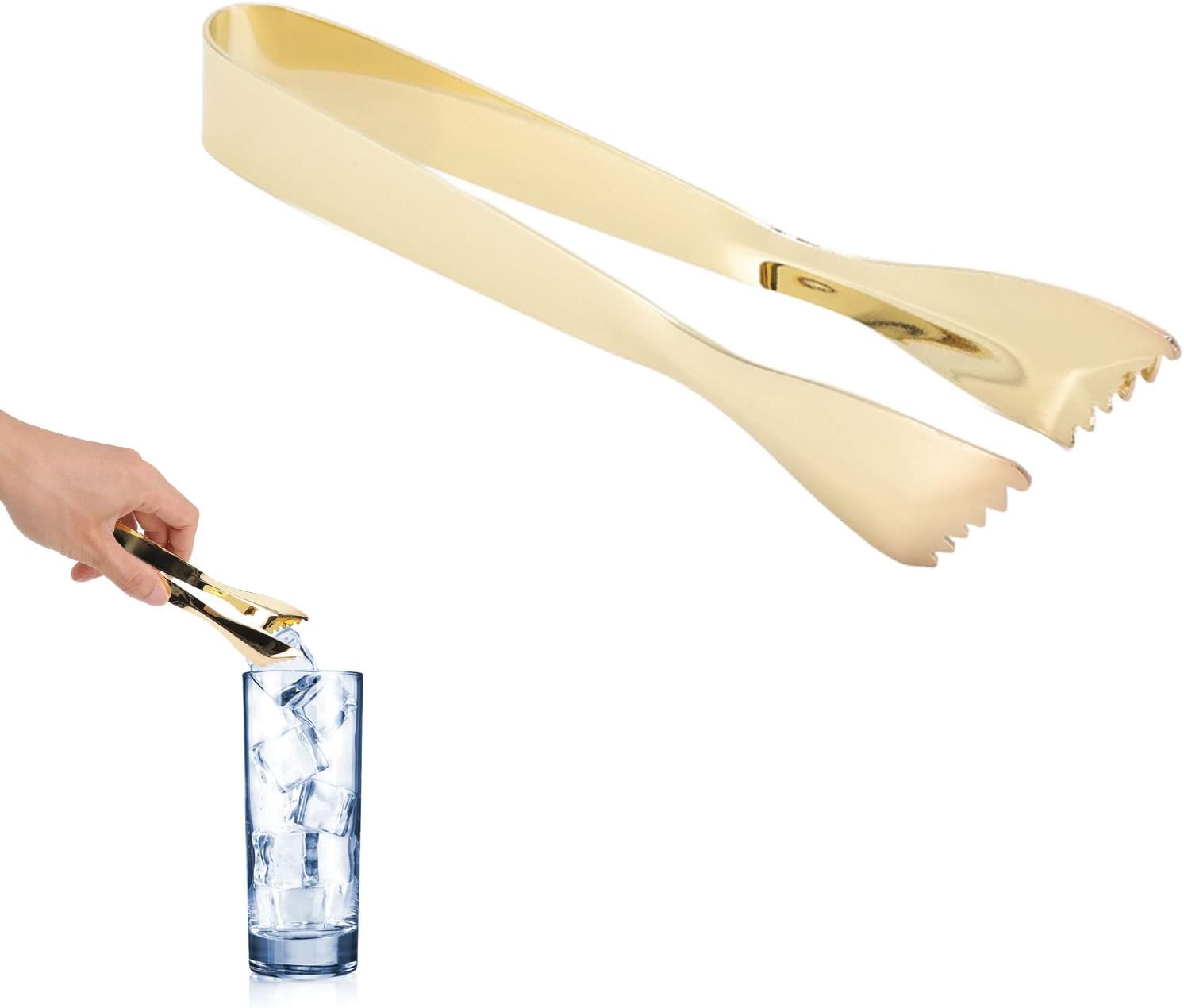 STAINLESS STEEL MATERIAL: The ice pliers are made of food grade stainless steel, which is safe, stable, rust proof, and durable. Gold can easily complement your bar utensils and home decor.