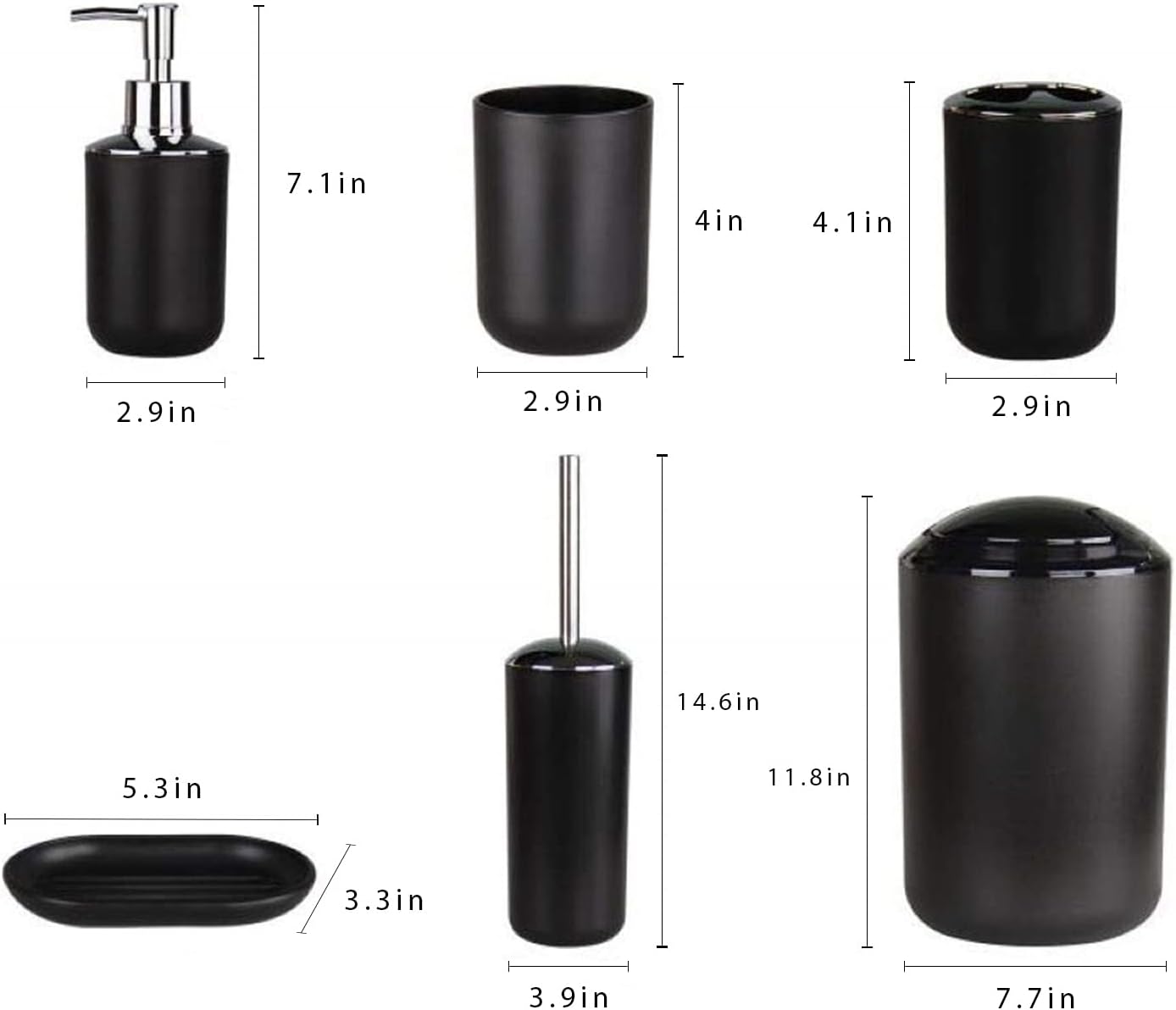 Complete Bathroom Accessory Set:Featuring a Toothbrush Holder,Toothbrush Cup,Soap Dispenser,Soap Dish,Trash Can,Toilet Brush & Holder,our bathroom accessories set ensures a unified and stylish bathroom aesthetic.