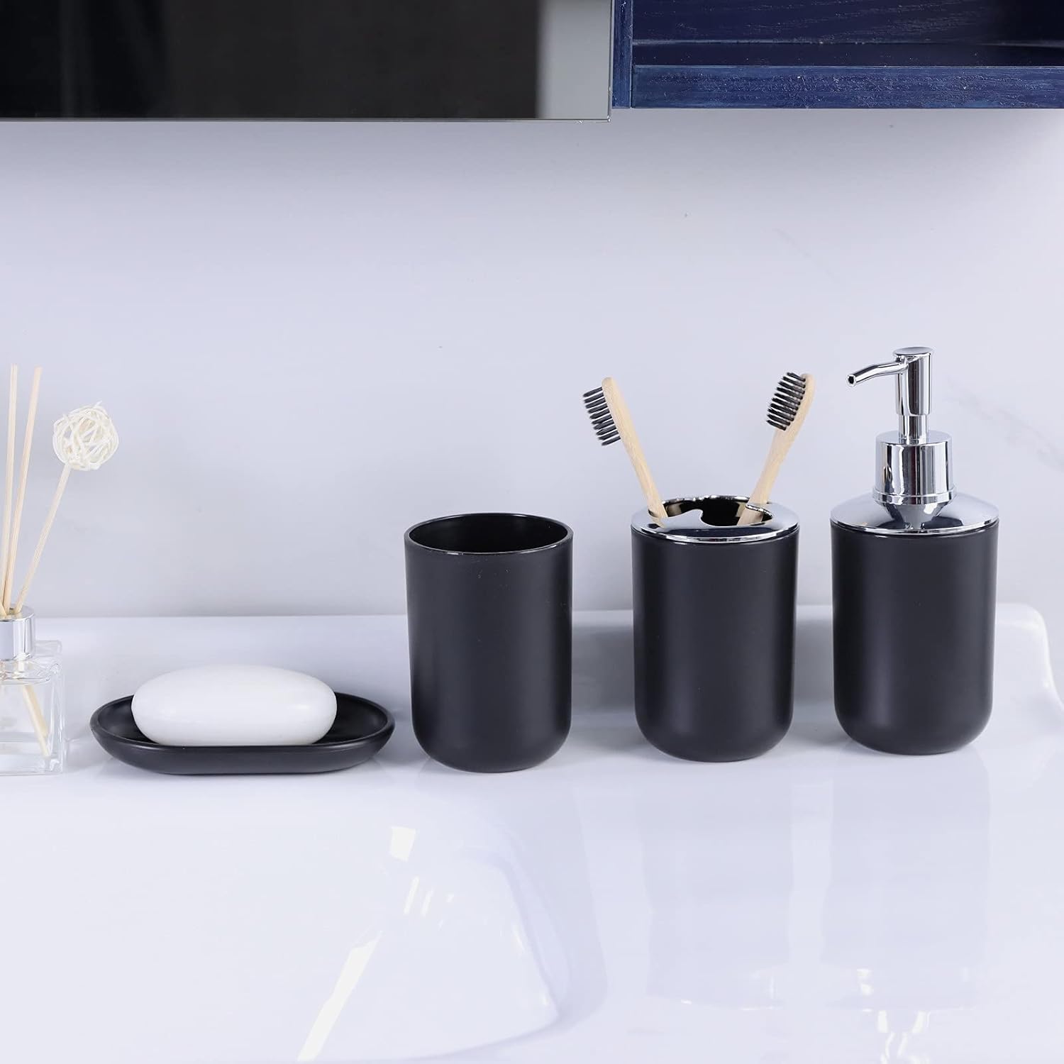 Durable Design:Our Grey bathroom accessories set crafted from Durable and cleanable plastic, it effortlessly withstands daily wear and tear, ensuring long-lasting use.