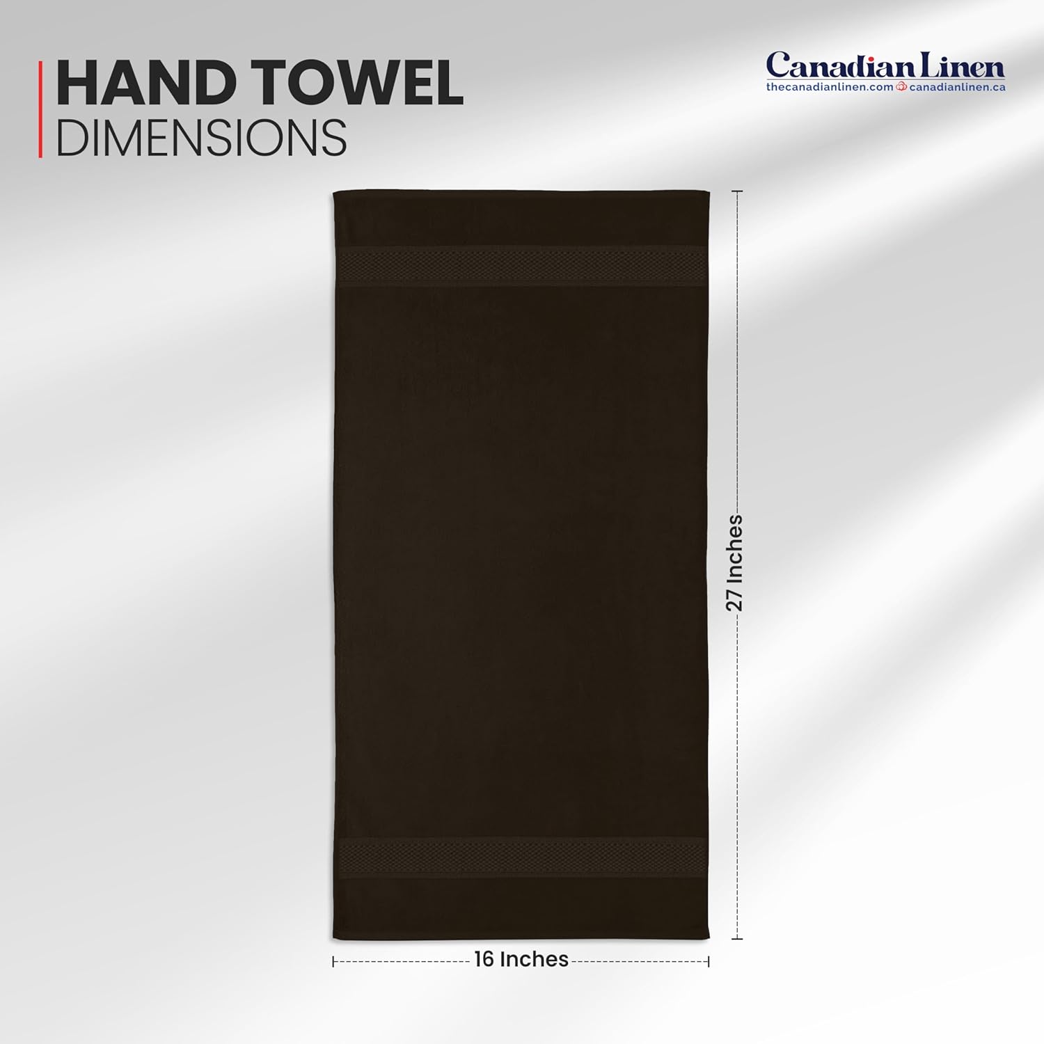 CANADIAN LINEN 6 PACK ESPRESSO BROWN HAND TOWELS SET – IMPERIAL BRAND PREMIUM TOWELS: Canadian Linen Imperial Premium Espresso Brown / Dark Brown Color Hand Towels are 16 x 27 inches in size and come in a value pack of 6 hand towels.