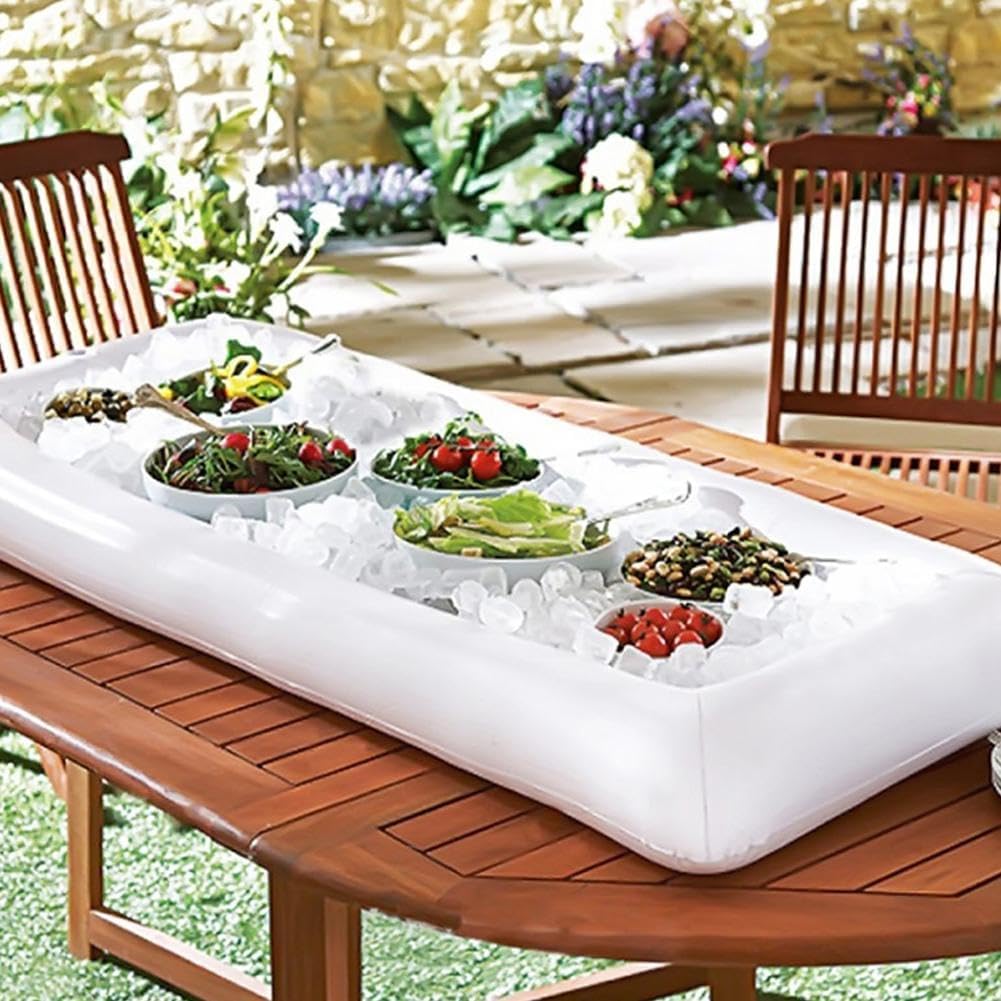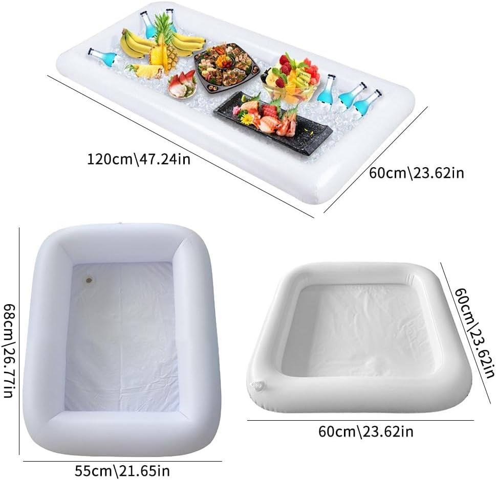 【Durable and Stable Construction】Made from waterproof plastic material, this inflatable bar maintains stability once inflated and boasts a strong load-bearing capacity. It can comfortably hold wine glasses, drinks, snacks, and more without compromising safety or functionality.