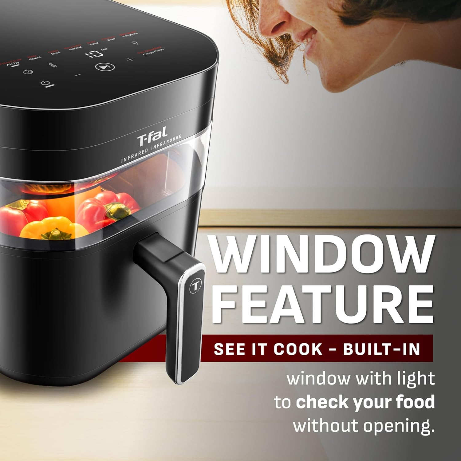 8 COOKING PROGRAMS: The large air fryer has Broil, Roast, Bake, Reheat, Toast, Air Fry, Dehydrate and T-fal’s innovative Crispy Finish program; gives meats and veggies a perfect sear-like finish and enhanced flavor