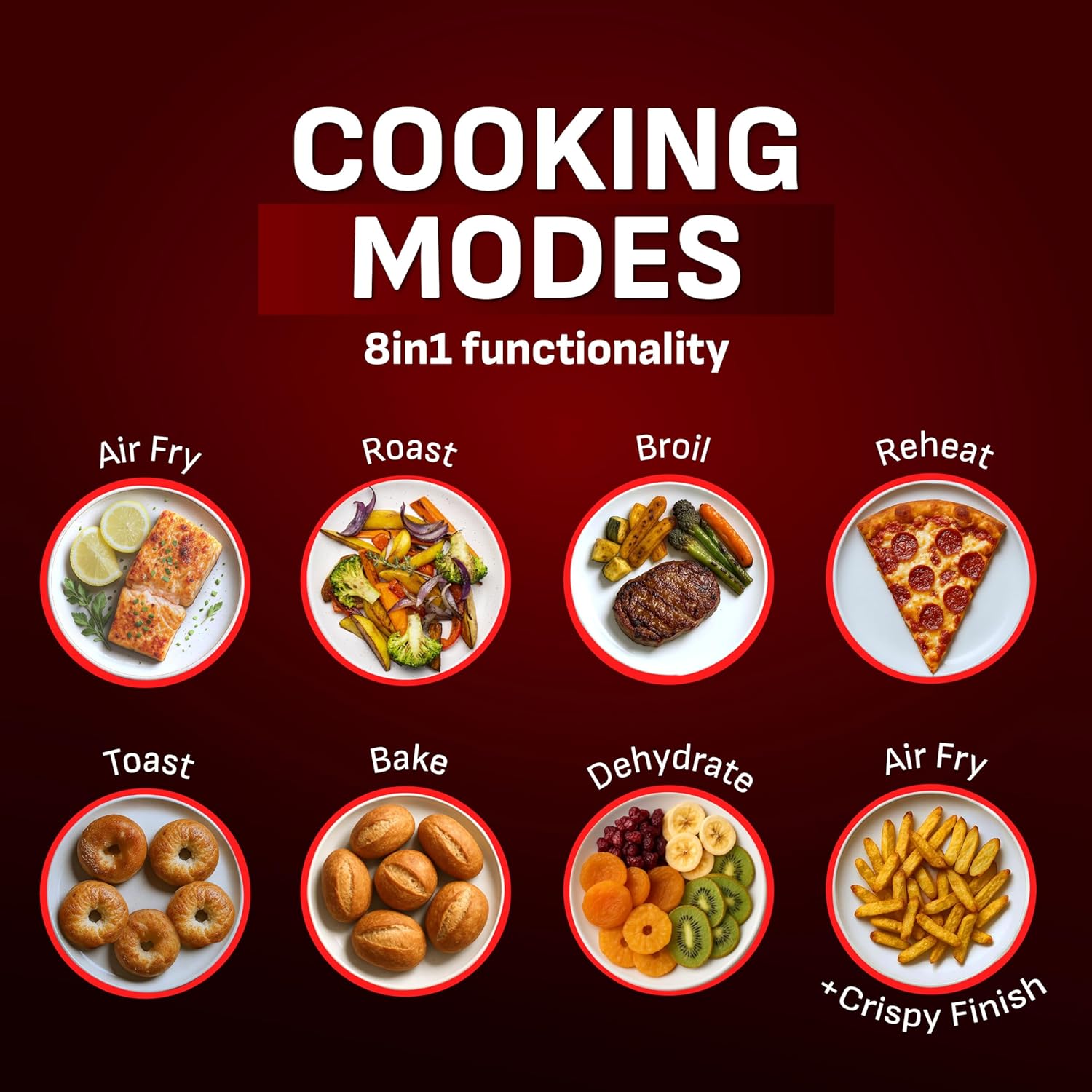 DUAL HEATING SYSTEM: The air fryer combo has a top infrared heater and a powerful bottom heater for precise temperature control and consistent cooking results