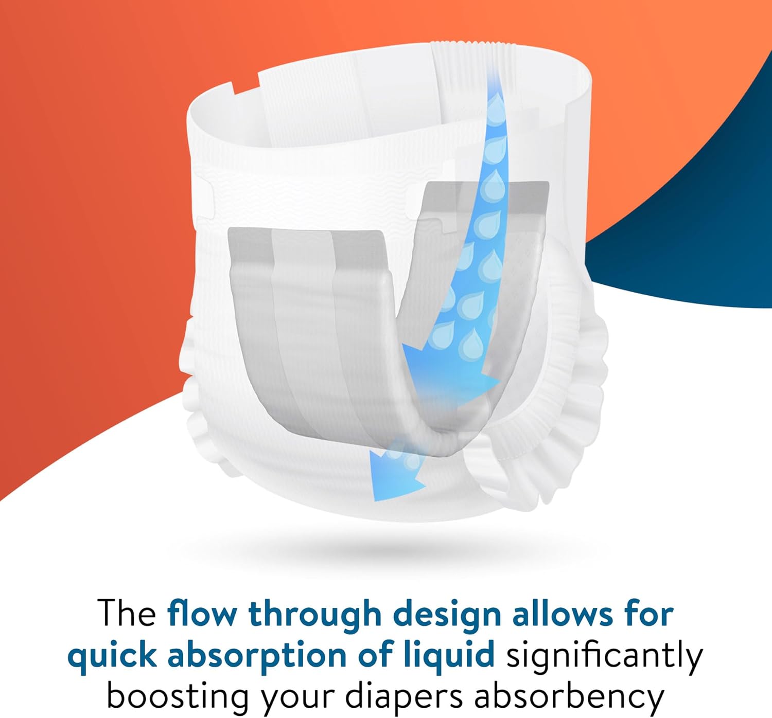 ABSORBS OVER 5 CUPS OF FLUID! SUPER ABSORBENT POLYMER LOCKS IN FLUID AND REDUCES ODOR: Absorbent fluff quickly absorbs fluid while the super absorbent polymer gels to lock in fluid and odor for unbeatable performance and maximum protection.
