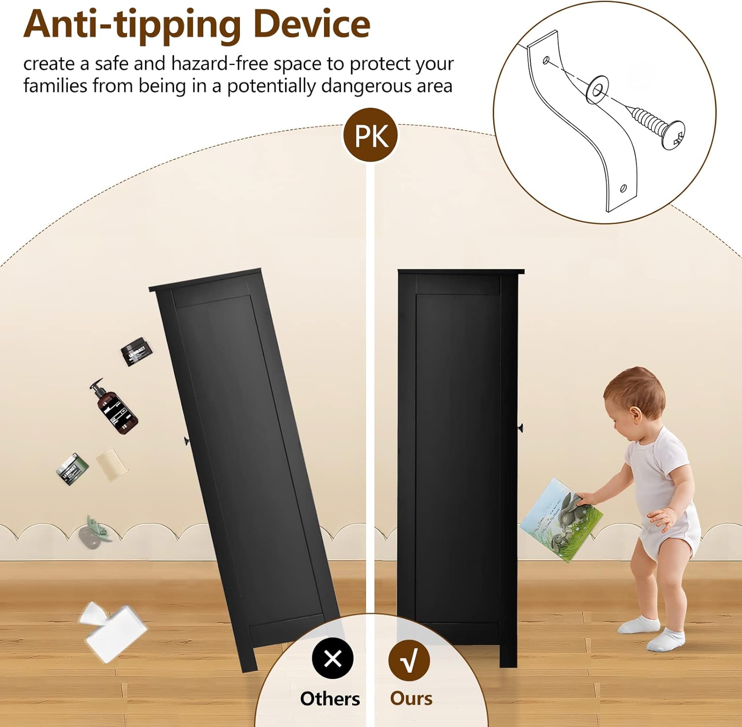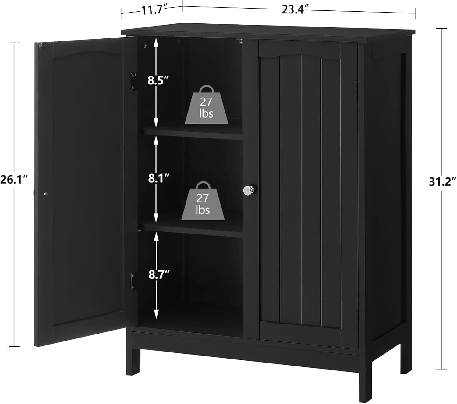 Safety for Your Home – stable construction and thick solid panel. It’s made of high quality P2 MDF and features environmentally friendly and high quality paint that is waterproof and completely suitable for the humid environment like a bathroom. This storage cabinet boasts a load capacity up to 34lb on the top, 27lb on each of the adjustable shelves as well as the bottom board.