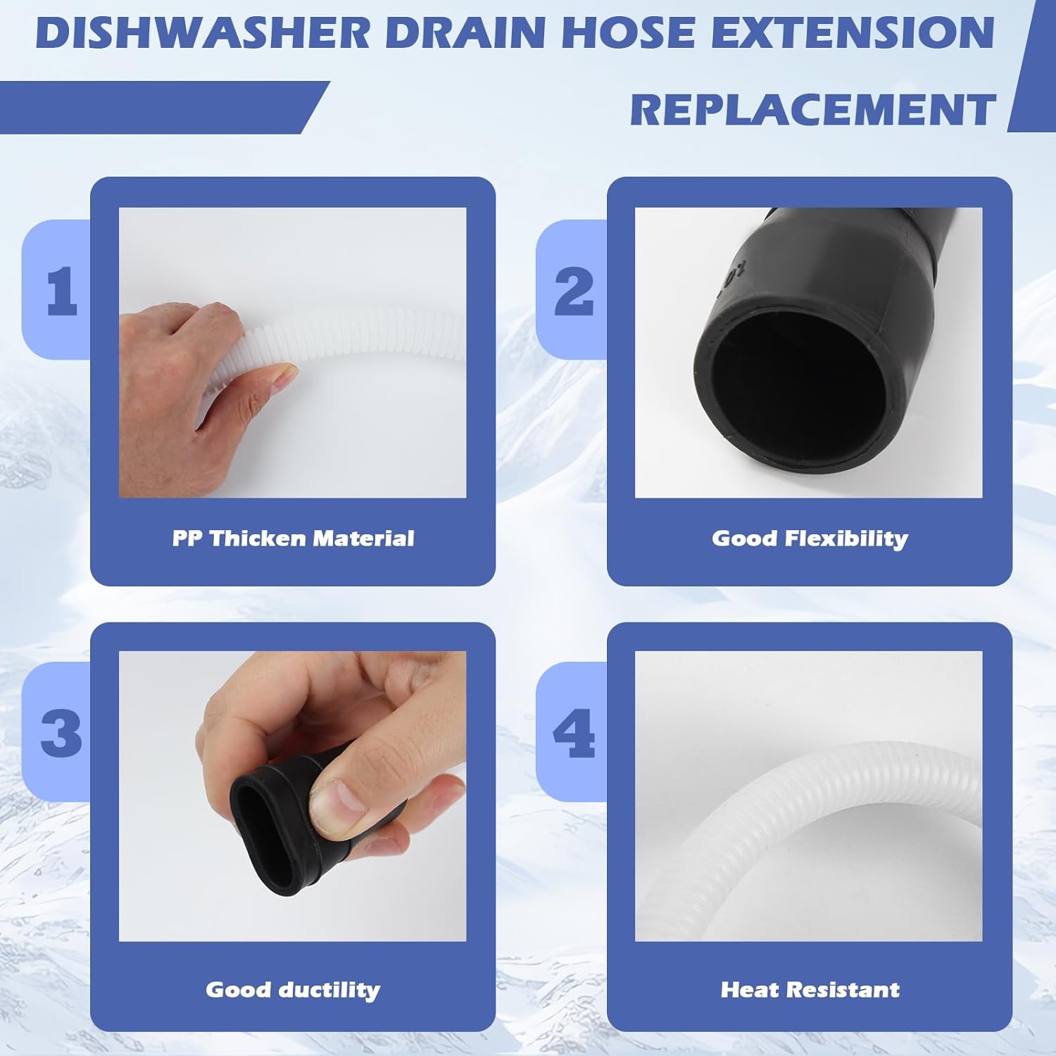 PP Thicken Material:The WD24X10065 dishwasher drain extension is made from corrugated PP construction that is heat, corrosion and burst resistant for long life Maximum flexibility and durability in tight spaces