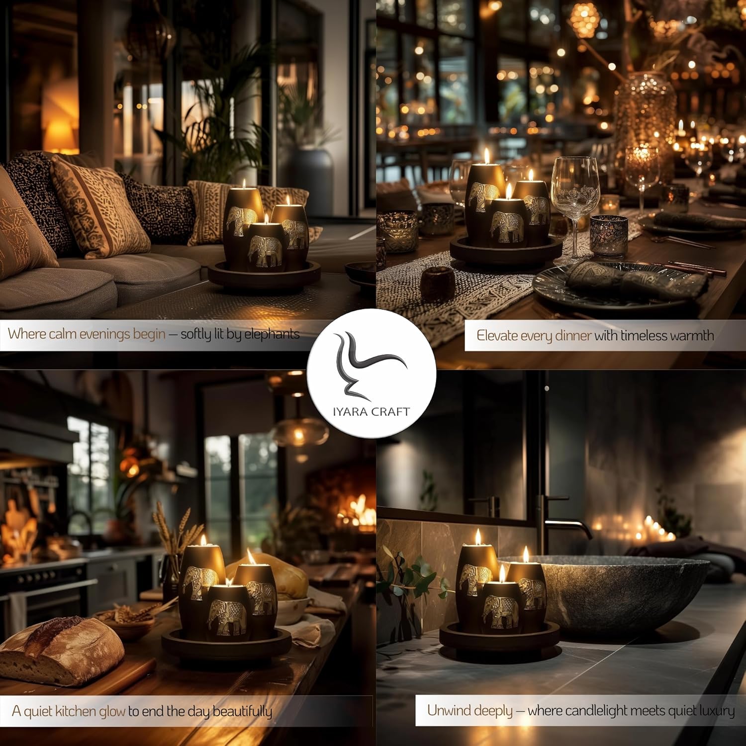 Invest in the IYARA CRAFT Decorative Elephant Tealight Candle Holders Set to imbue your surroundings with timeless elegance. Beyond a simple utility item, these holders promise to be a cherished centerpiece, reflecting the beauty of ancient traditions while promising longevity and aesthetic satisfaction for years to come.