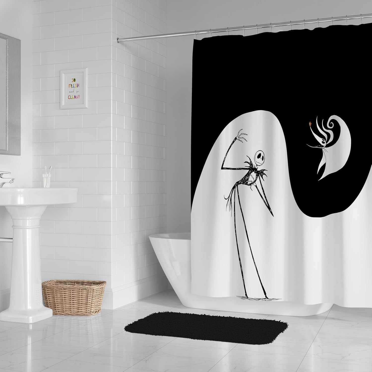 Transform your bathroom with the Disney Nightmare Before Christmas shower curtain – full of whimsical, spooky fun! Turn bath time into a enchanting ghoulish time with this 100% polyester shower curtain that will create the dream bathroom for your child. Vibrant design features Jack Skellington and Zero. Curtain measures 70 x 72 inches; curtain rod and liner not included.