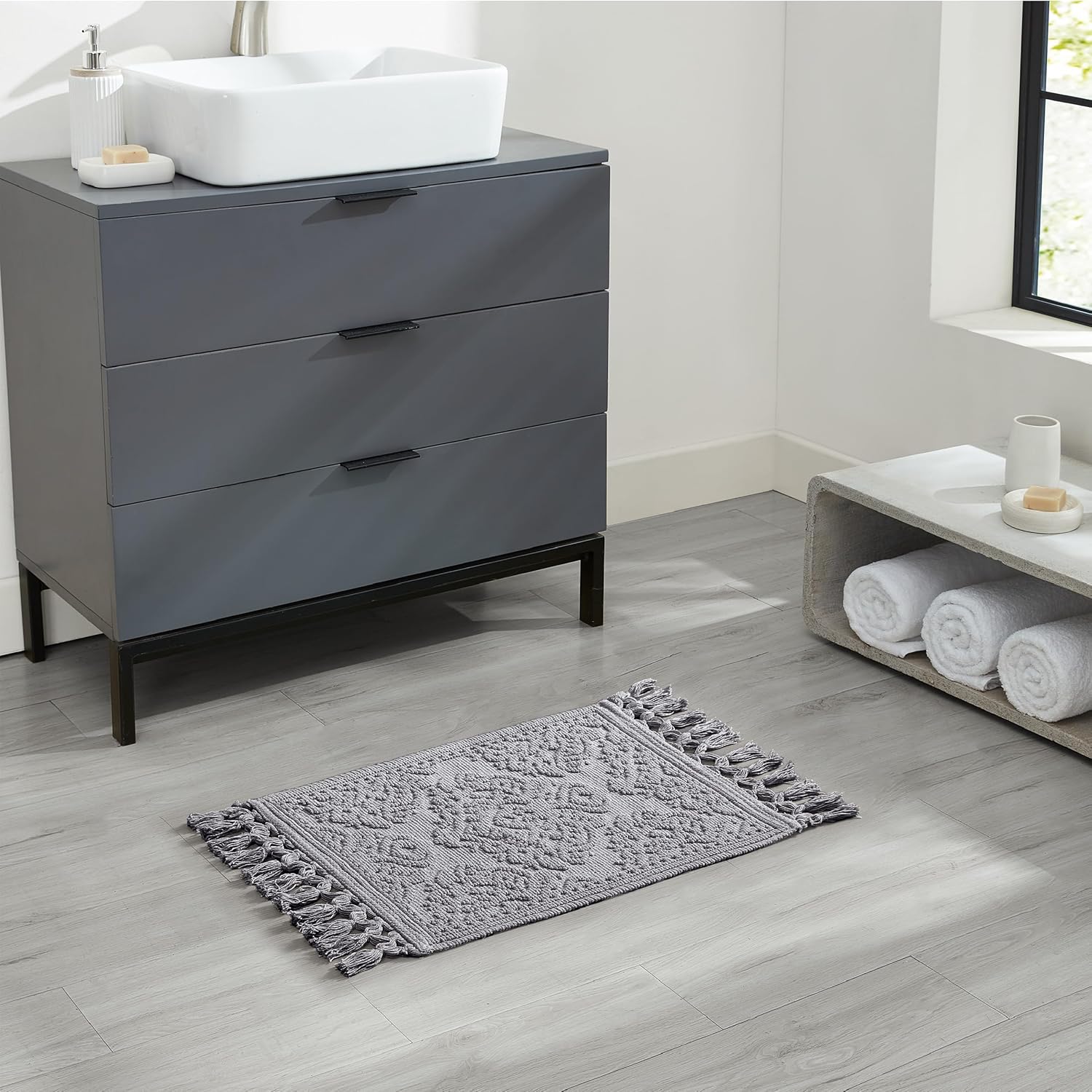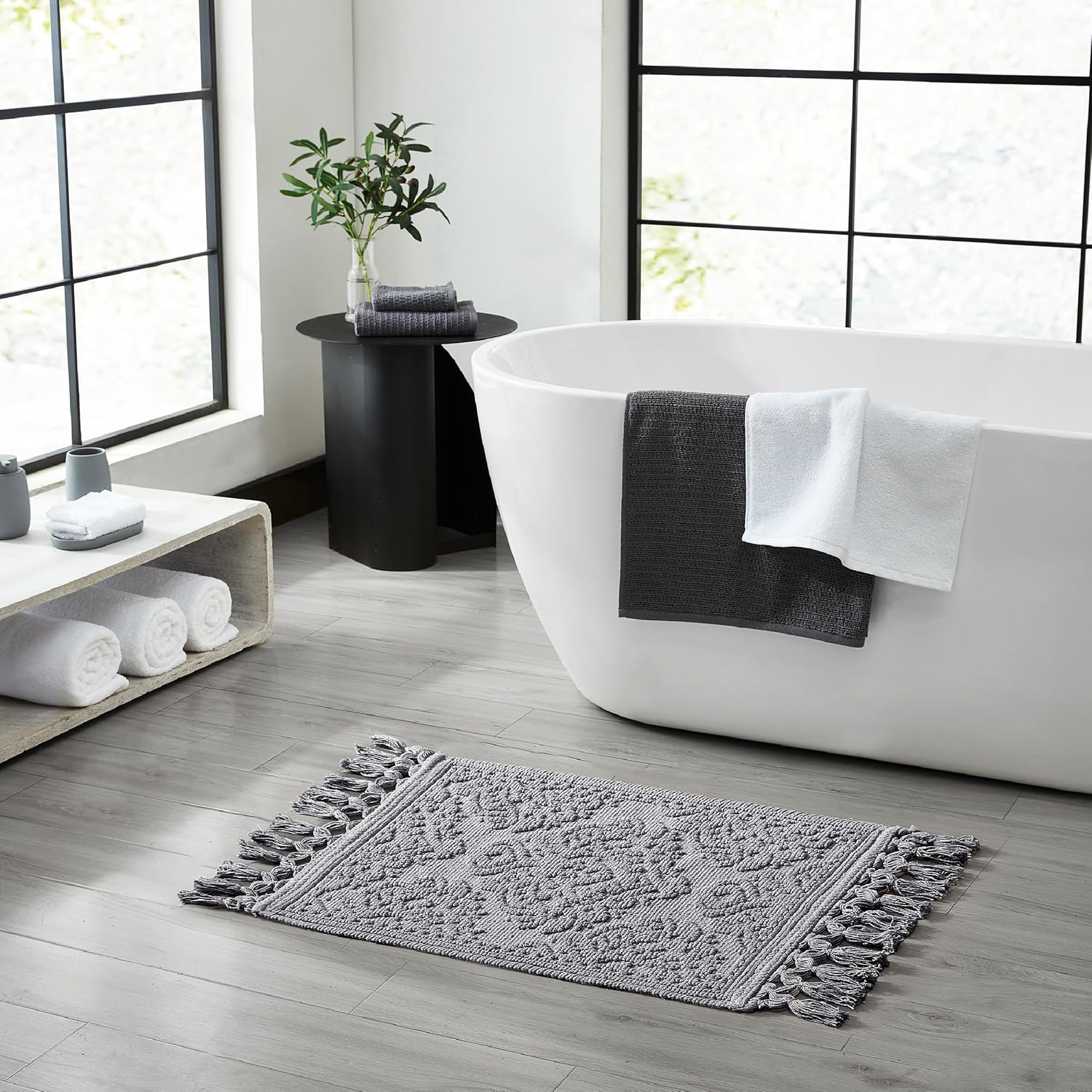Jean Pierre – Ricardo Bath Mat, Woven Fringe Bathroom Rugs, 100% Cotton, Premium Bathroom Decor – Measures 17″ x 31″ – Dark Gray