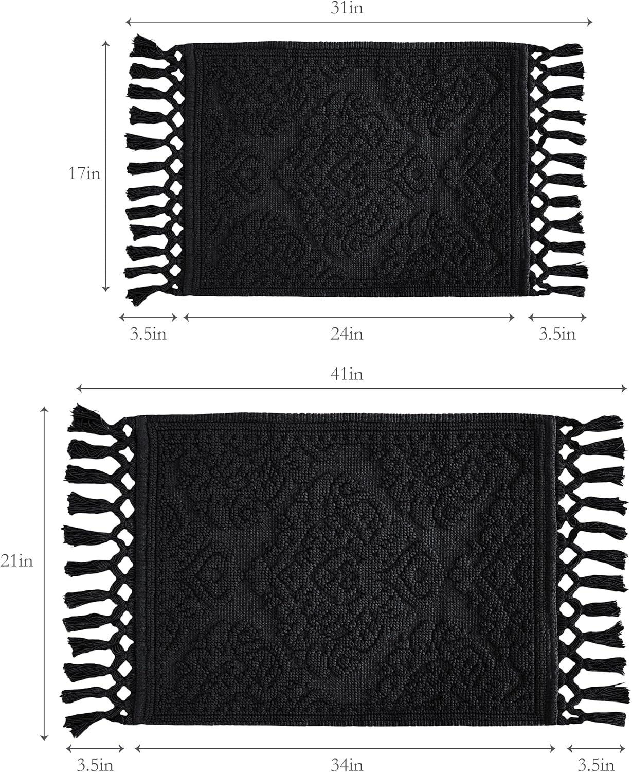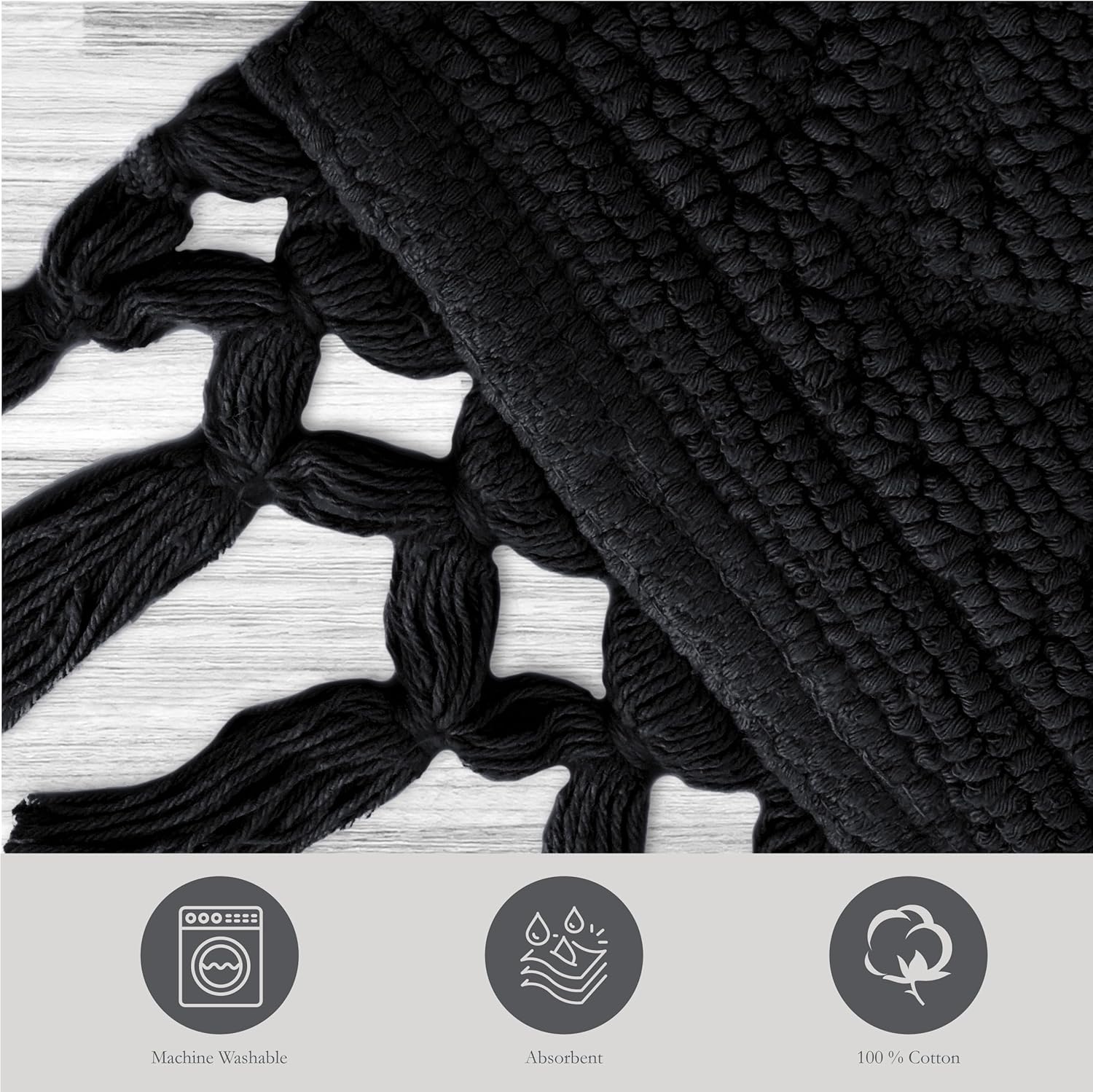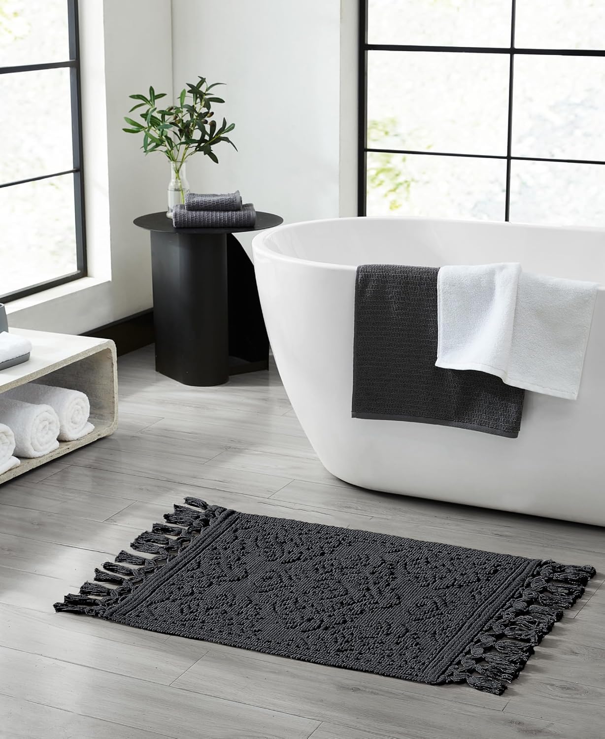 As stylish as they are durable, Jean Pierre Ricardo Collection features 100% natural cotton specially woven to resemble a beaded rug. Each bath rug is finished with on-trend fringe in classic, rich colors, perfect for elevating any bathroom décor. Thick, absorbent 100% cotton is meant for long-lasting use. Machine washable cotton makes cleaning a breeze. Machine wash cold separately with mild detergent. Do not bleach. For best results, hang dry. Rug grippers or non-skid rug pad recommended and sold separately. Imported.