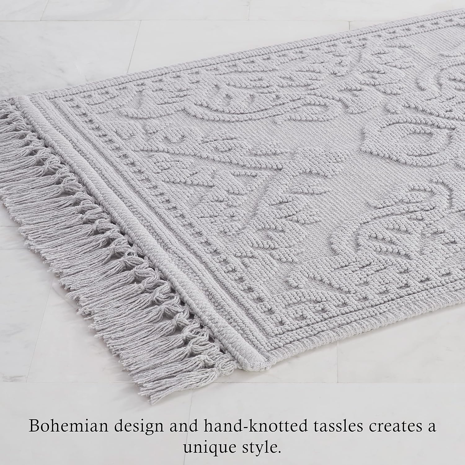 As stylish as they are durable, Jean Pierre Ricardo Collection features 100% natural cotton specially woven to resemble a beaded rug. Each bath rug is finished with on-trend fringe in classic, rich colors, perfect for elevating any bathroom décor. Thick, absorbent 100% cotton is meant for long-lasting use. Machine washable cotton makes cleaning a breeze. Machine wash cold separately with mild detergent. Do not bleach. For best results, hang dry. Rug grippers or non-skid rug pad recommended and sold separately. Imported.