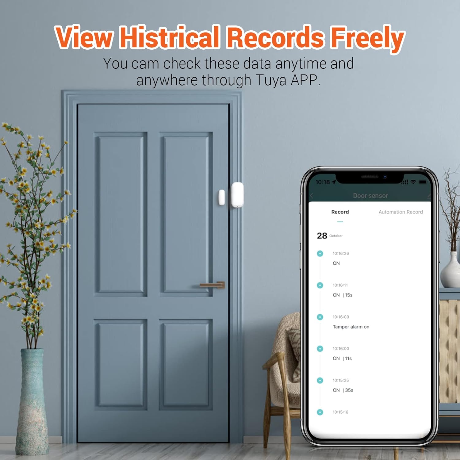 View Histric Records Freely: Tuya application records the opening/closing status of doors and windows,you can check these data anytime and anywhere through Tuya APP. Never worry about missing any important moment