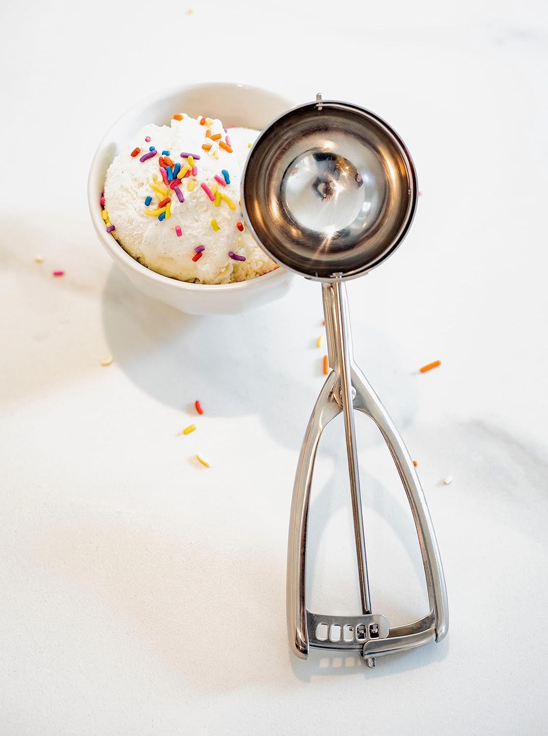 EASY TO USE – Squeeze the handle to release rounded scoops. Ergonomic design with a trigger release mechanism, perfect for left or right-handed users.
