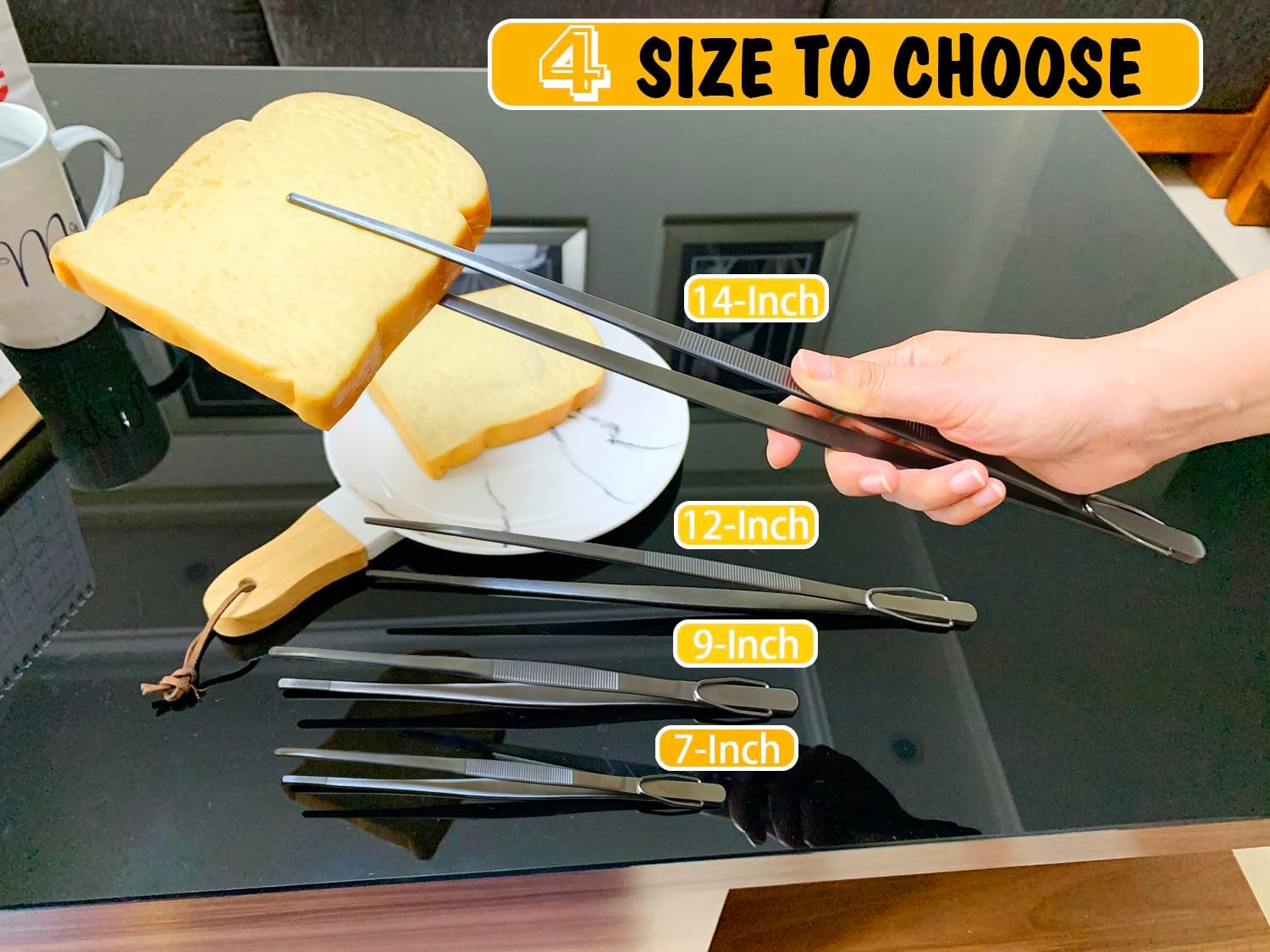 PERFECT TWEEZER STYLE TONGS FOR VARIOUS GOODIES – Each package includes 3 pieces 9-inch (23.3cm) tweezer tongs (Black) , these kitchen tweezers are widely used, they’re not just for serving appetizers, meat, steak, bread, salad, cookies, fried, hot dog, spaghetti, buffet, bbq, baking and so on. Even can be used for feeding small animals, cleaning out a garden or fish tank, plant maintenance.
