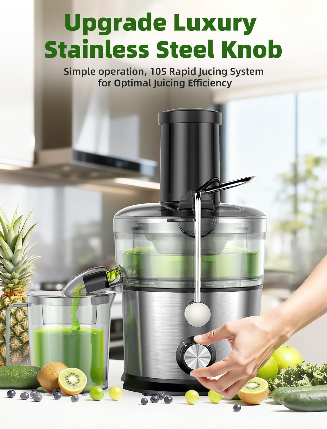 Juicer Machines, 1200W Juicer with 3″ Feed Chute for Whole Fruits and Vegs, Dual Speeds Centrifugal Juice Extractor, Heavy Duty Full Copper Motor, 35oz Large Juice Jug, Stainless Steel