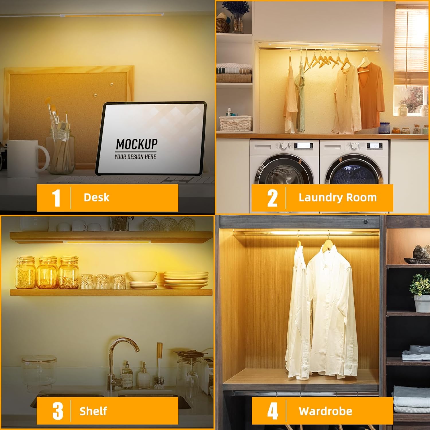 Stick on where you want and the simplicity of the product as well as light coverage make this a win-win. The counter light can be spliced at will and installed in your kitchens cabinet, bookcases, display cabinets, wardrobes, wine cabinets, shoe cabinets, sinks, entrances, storage rooms, and garages.