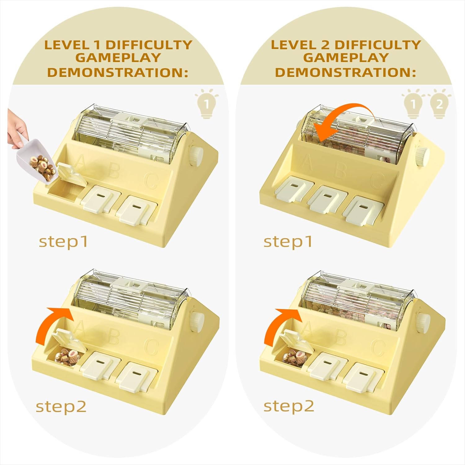 [Two Difficulty Levels for Progressive Play] This interactive puzzle toy offers two difficulty levels—Level 1 and Level 2. In Level 1, your dog can open 6 food boxes to access treats, while in Level 2, they rotate the central food cylinder to dispense food into the boxes. This progressive challenge helps keep your dog engaged and promotes problem-solving skills. The adjustable design ensures that the toy grows with your dog’s intelligence, offering an evolving experience that encourages learning and play while rewarding them with food.