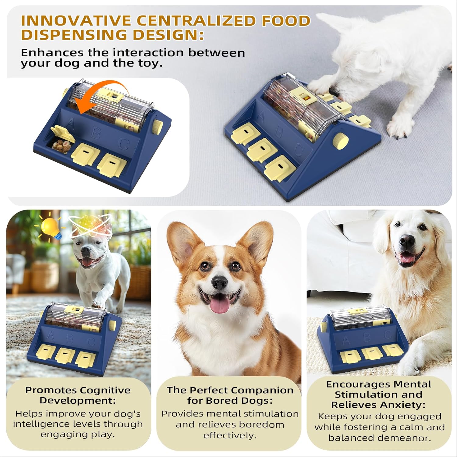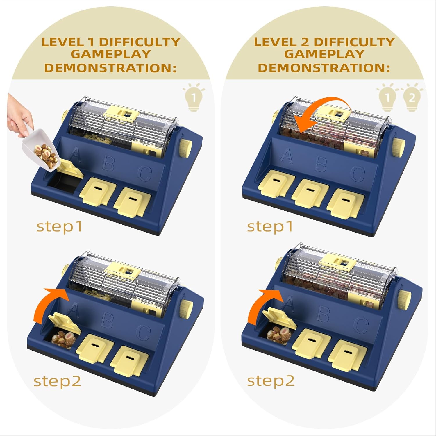 [Two Difficulty Levels for Progressive Play] This interactive puzzle toy offers two difficulty levels—Level 1 and Level 2. In Level 1, your dog can open 6 food boxes to access treats, while in Level 2, they rotate the central food cylinder to dispense food into the boxes. This progressive challenge helps keep your dog engaged and promotes problem-solving skills. The adjustable design ensures that the toy grows with your dog’s intelligence, offering an evolving experience that encourages learning and play while rewarding them with food.